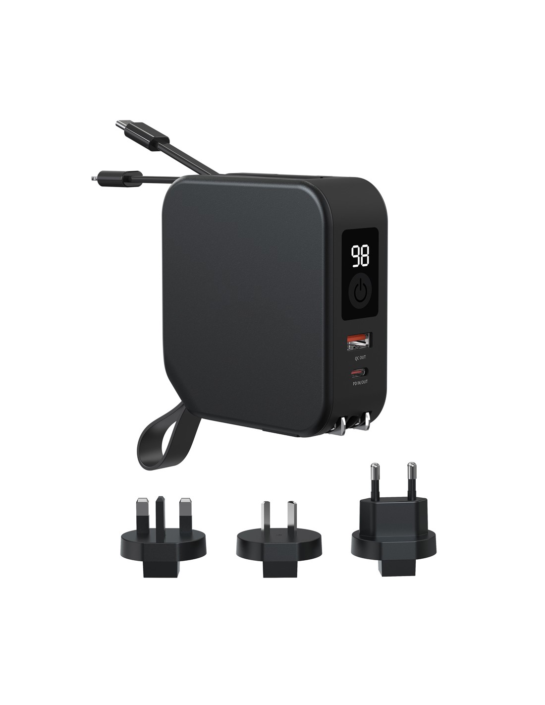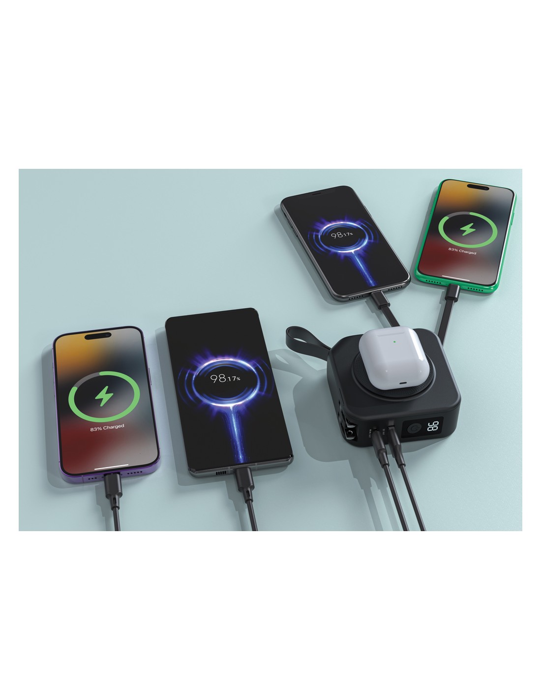 Il caricatore universale Saratoga 5 in 1 è il caricatore portatile per eccellenza, dotato di adattatori intercambiabili per viaggiare senza problemi. Con la sua capiente batteria da 10.000 mAh, offre un tempo di utilizzo prolungato per i vostri dispositivi. Con caricatore magnetico integrato superveloce da 15W per i telefoni IOS più recenti e i telefoni Android di ultima generazione. Inoltre, include un cavo integrato su misura per i dispositivi IOS e un cavo USB-C per facilitare la ricarica dei dispositivi Android e dei dispositivi IOS di nuova generazione. Grazie alla capacità di ricarica rapida PD 20W USB-C, è possibile ricaricare il dispositivo abilitato PD fino al 50% in meno di 30 minuti. Include gli adattatori AU, UE, UK, USA e Asia. Il caricabatterie può caricare fino a cinque oggetti contemporaneamente e la powerbank stessa si ricarica mentre si caricano i dispositivi mobili quando viene inserita in una presa di corrente. Così la mattina ci si sveglia sempre con il telefono e