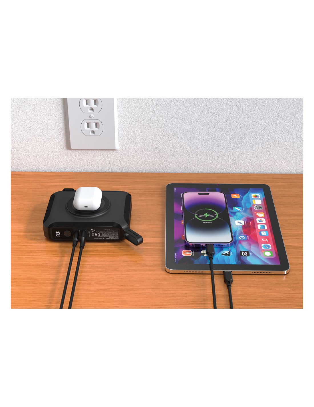 Power bank di formato mini con logo luminoso e cavo in alluminio 3 in 1 (tipo C, Android, iPhone). Il dispositivo si illumina per 30 secondi quando viene toccato o ricaricato. Capacità: 1000 mAh. Ingresso/uscita DC: 5 V - 1A. Peso netto: 50 grammi. Dimensione: 80 x 50 x 13 mm. Viene fornito in...