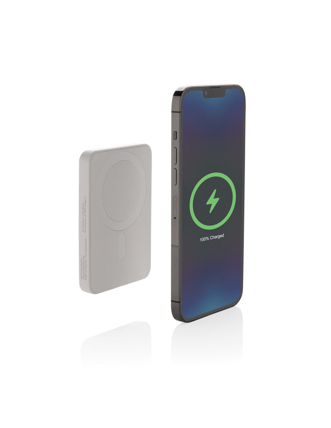 Caricatore wireless magnetico in bamboo (15W) e PB (5000 mAh). Uscita: DC 9V/1.1A (18W). Compatibile con iPhone® 12 e successivi. Include un anello metallico magnetico per la ricarica di altri telefoni. PD power per supportare i laptop di nuova generazione.
