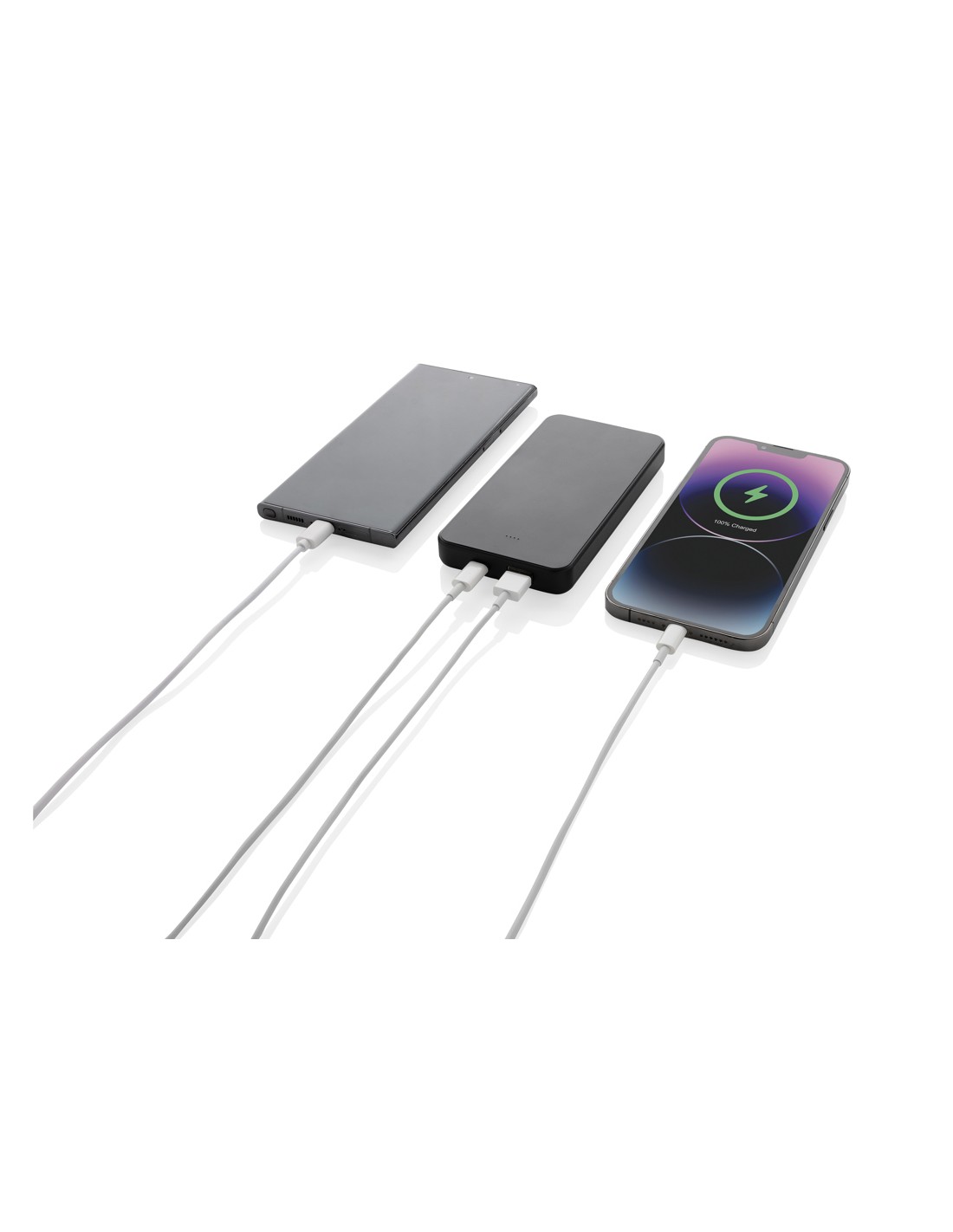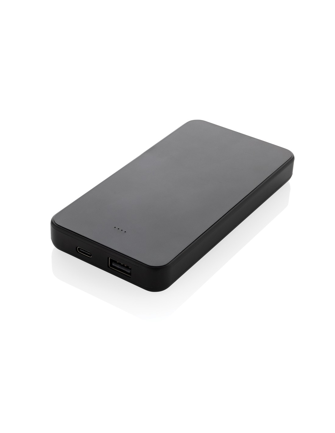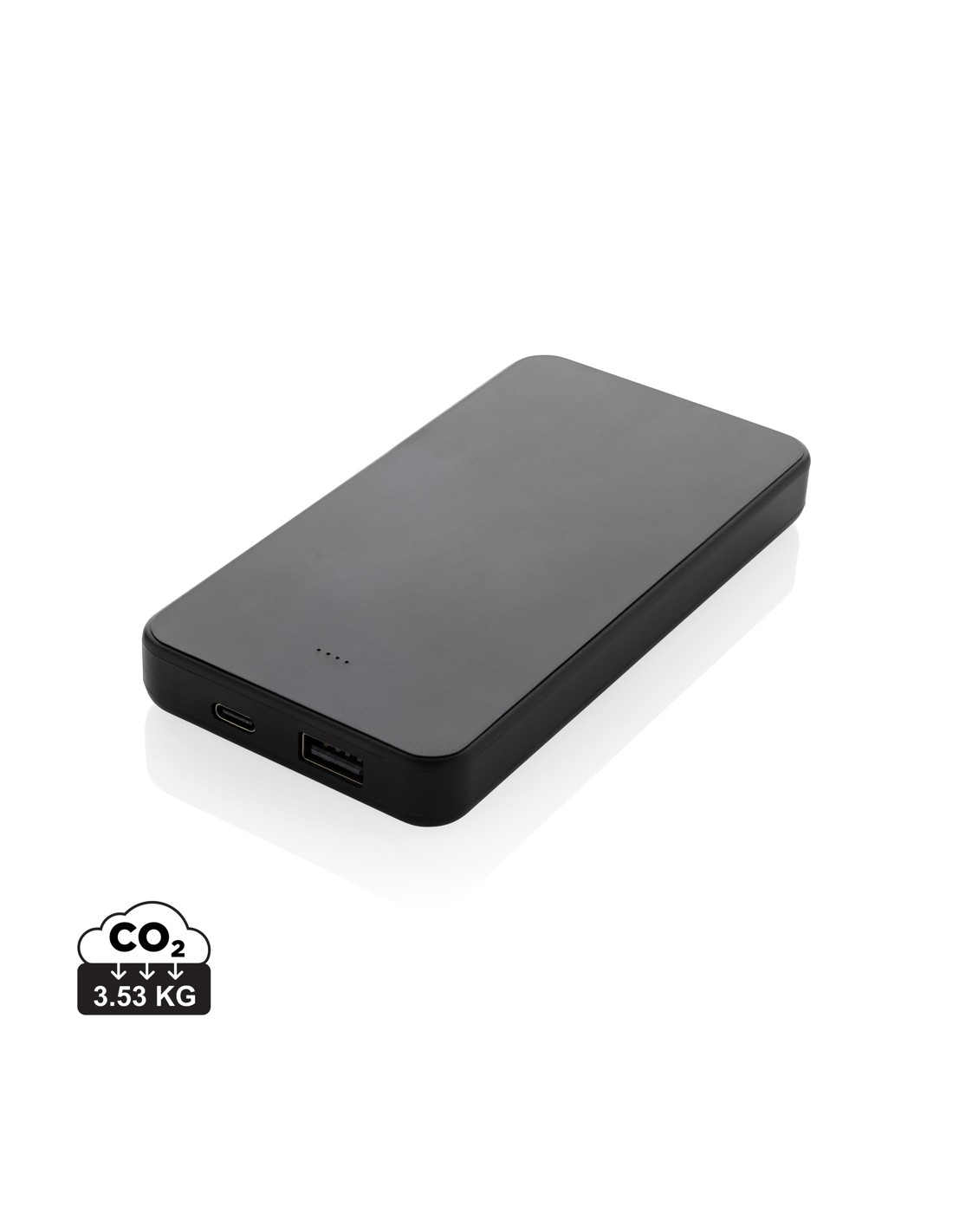 Powerbank da 10.000 mAh con porta di ingresso/uscita type C e porta USB A aggiuntiva. La custodia è realizzata in plastica ABS riciclata certificata RCS. RCS (Recycled Claim Standard) è uno standard per verificare il contenuto riciclato di un prodotto lungo l'intera catena di fornitura. Contenuto riciclato totale: 21% in base al peso totale dell'articolo. Quando è completamente carica, la powerbank fornisce energia sufficiente per ricaricare il telefono cellulare fino a quattro volte. La powerbank contiene una batteria ai polimeri di litio di grado A da 10.000 mAh a lunga durata. Gli indicatori di potenza indicano il livello di energia rimanente, in modo da sapere sempre quando ricaricare. Input Type-C 5V/2.4A; USB A: output 5V/2.4A, type C output: 5V/2A Articolo e accessori privi di PVC. Incluso cavo di ricarica in TPE riciclato certificato RCS. Imballato in una confezione FSC® mix.