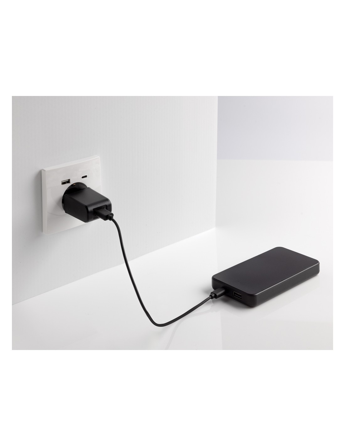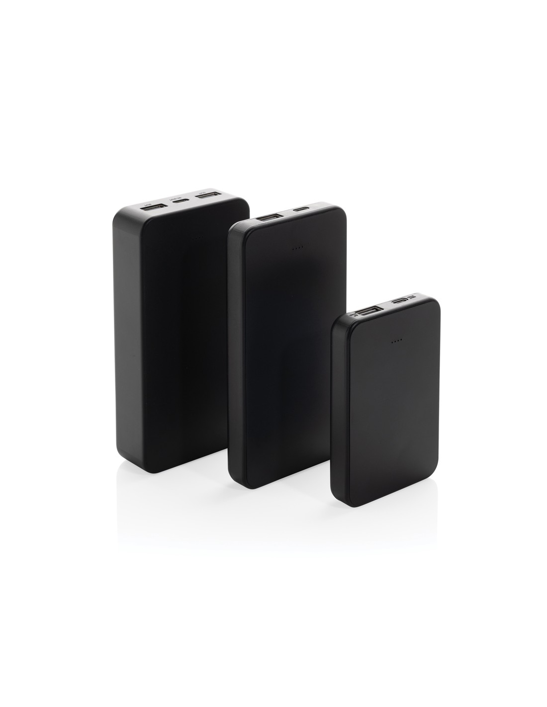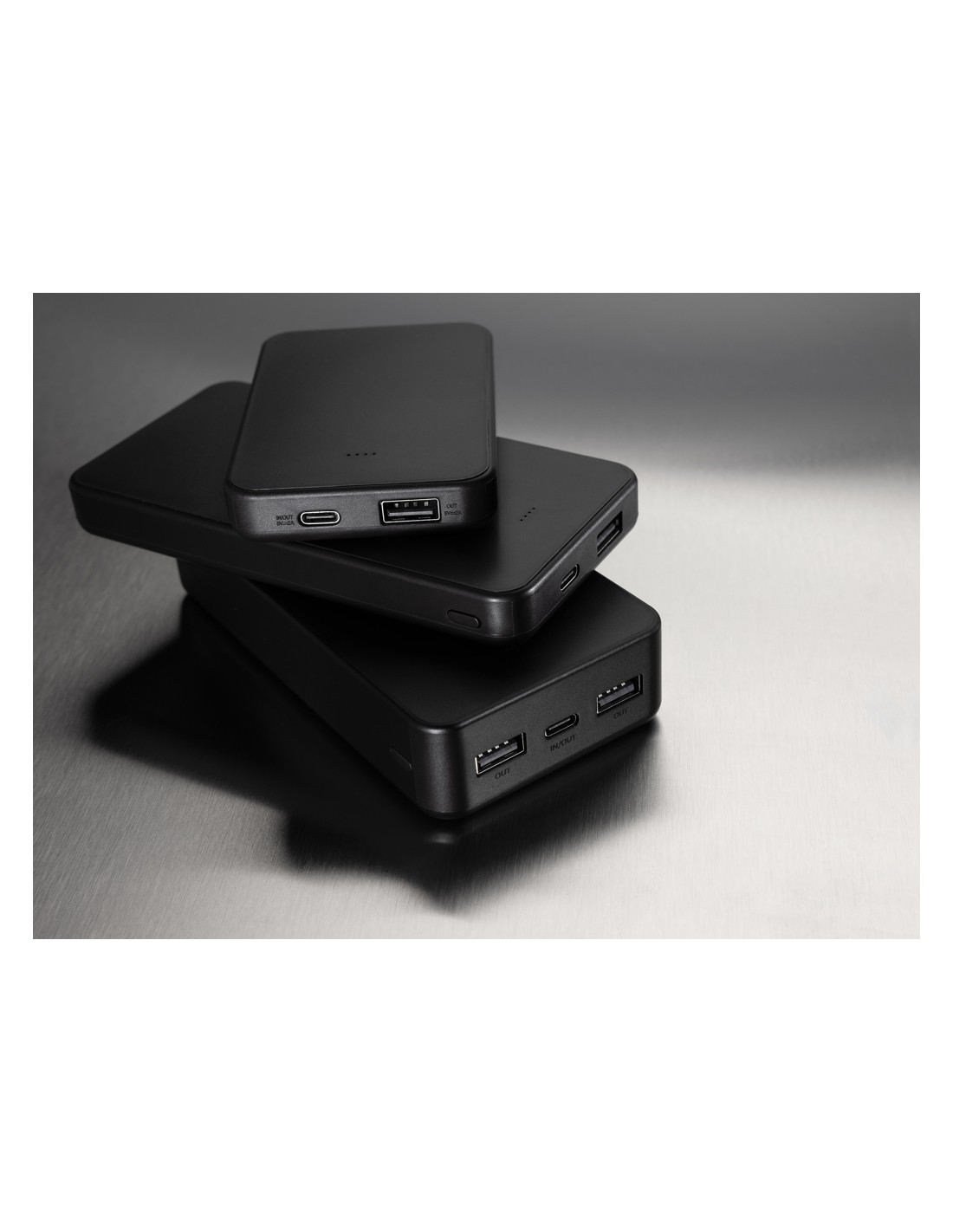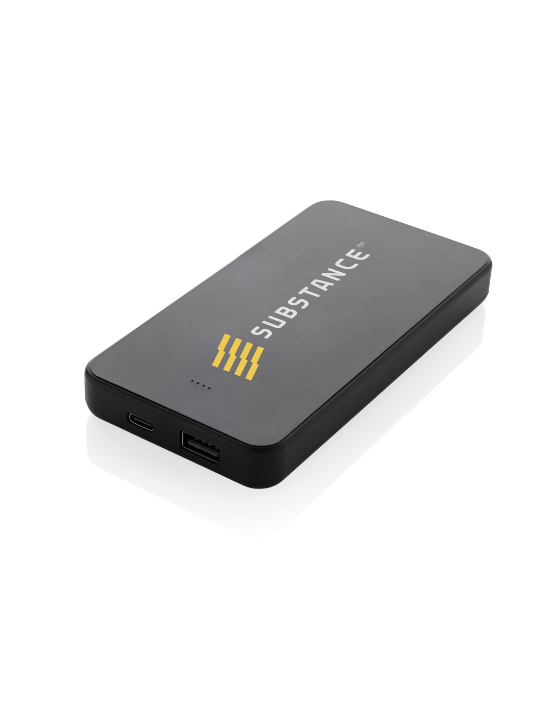 Powerbank da 10.000 mAh con porta di ingresso/uscita type C e porta USB A aggiuntiva. La custodia è realizzata in plastica ABS riciclata certificata RCS. RCS (Recycled Claim Standard) è uno standard per verificare il contenuto riciclato di un prodotto lungo l'intera catena di fornitura. Contenuto riciclato totale: 21% in base al peso totale dell'articolo. Quando è completamente carica, la powerbank fornisce energia sufficiente per ricaricare il telefono cellulare fino a quattro volte. La powerbank contiene una batteria ai polimeri di litio di grado A da 10.000 mAh a lunga durata. Gli indicatori di potenza indicano il livello di energia rimanente, in modo da sapere sempre quando ricaricare. Input Type-C 5V/2.4A; USB A: output 5V/2.4A, type C output: 5V/2A Articolo e accessori privi di PVC. Incluso cavo di ricarica in TPE riciclato certificato RCS. Imballato in una confezione FSC® mix.