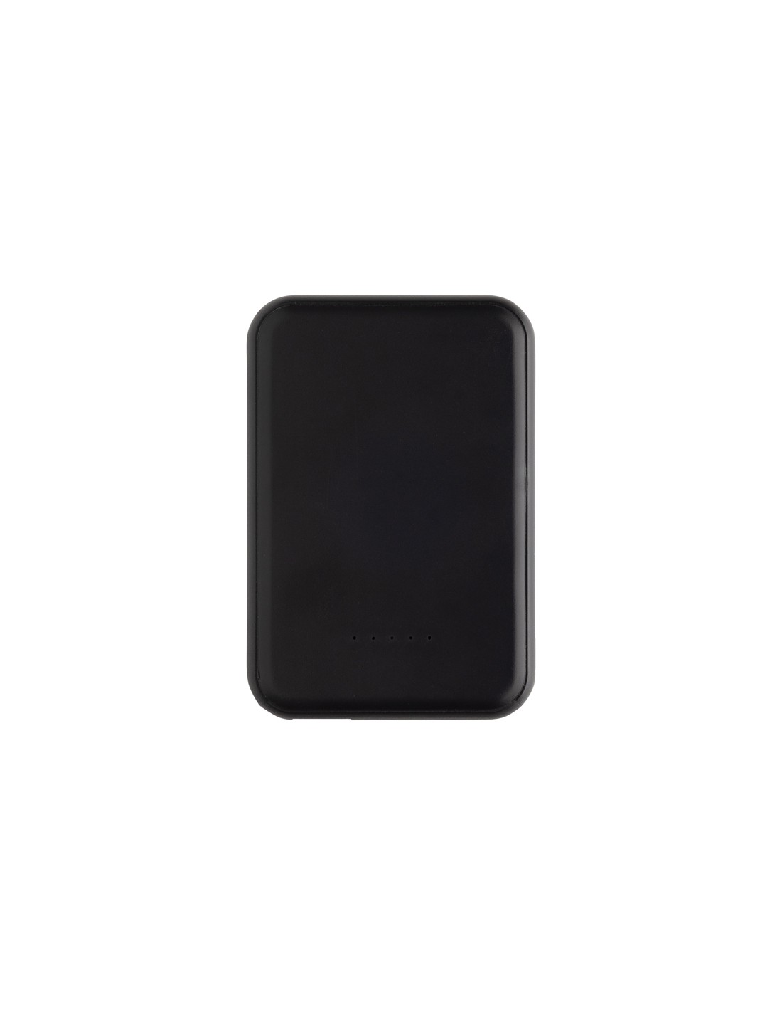 Powerbank tascabile da 5.000 mAh con caricatore wireless magnetico da 5W, la cui custodia è realizzata in plastica ABS riciclata certificata RCS. RCS (Recycled Claim Standard) è uno standard per verificare il contenuto riciclato di un prodotto lungo l'intera catena di fornitura. Contenuto riciclato totale: 20 % in base al peso totale dell'articolo. Con opzione di uscita USB A e una type C. La powerbank contiene una batteria ai polimeri di litio di grado A da 5.000 mAh a lunga durata. Gli indicatori di potenza indicano il livello di energia rimanente, in modo da sapere sempre quando ricaricare.; Input type C 5V/2.4A; uscita type C /USB A: 5V/2A.4A. Articolo e accessori privi di PVC. Incluso cavo di ricarica in TPE riciclato certificato RCS. Imballato in una confezione FSC® mix.