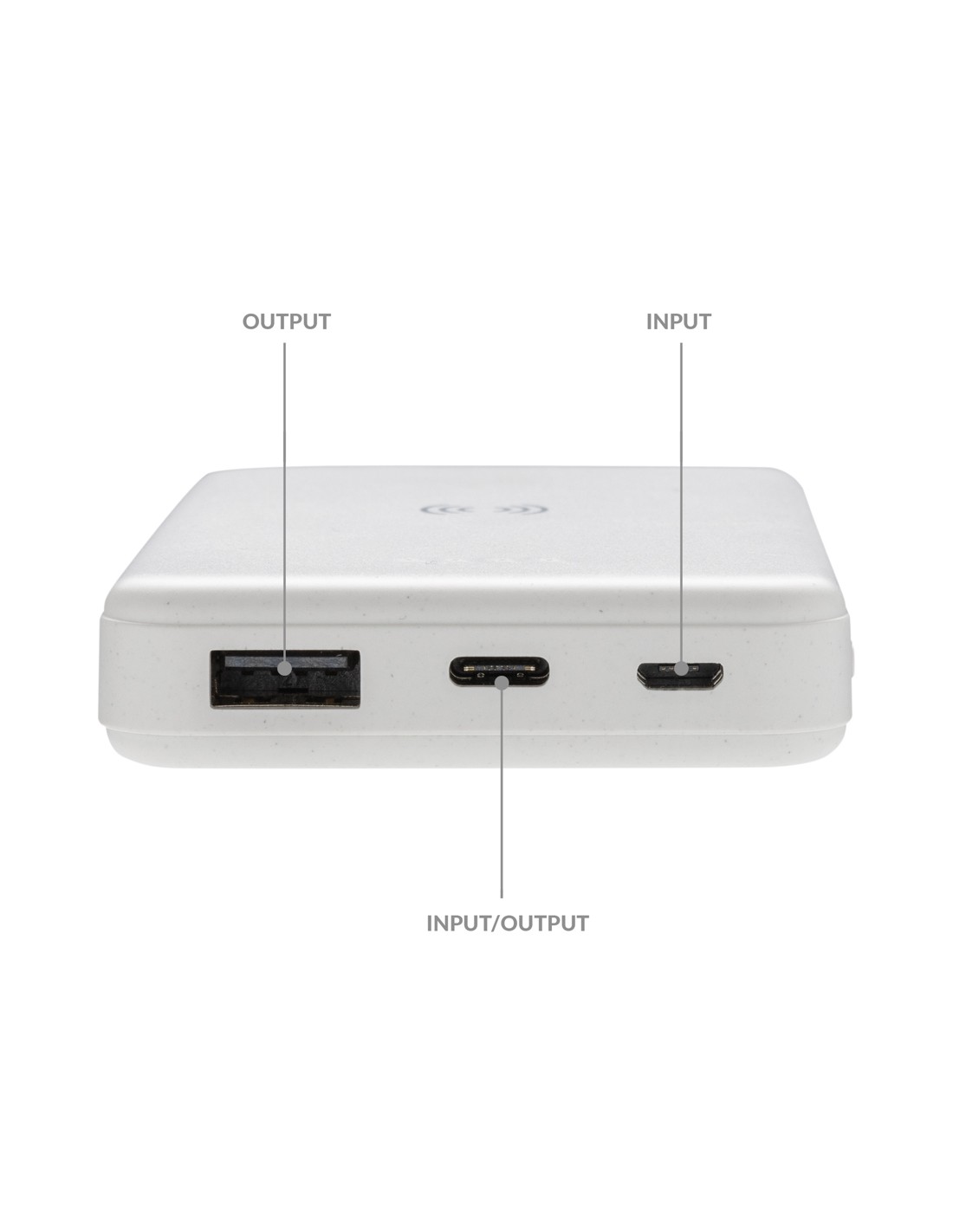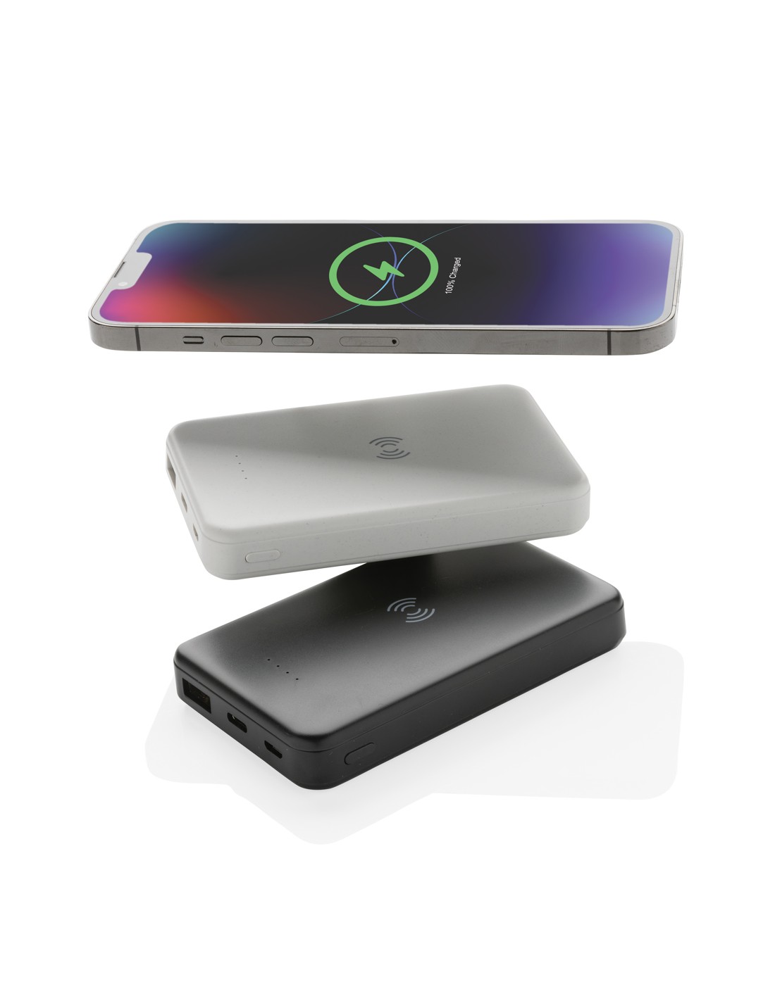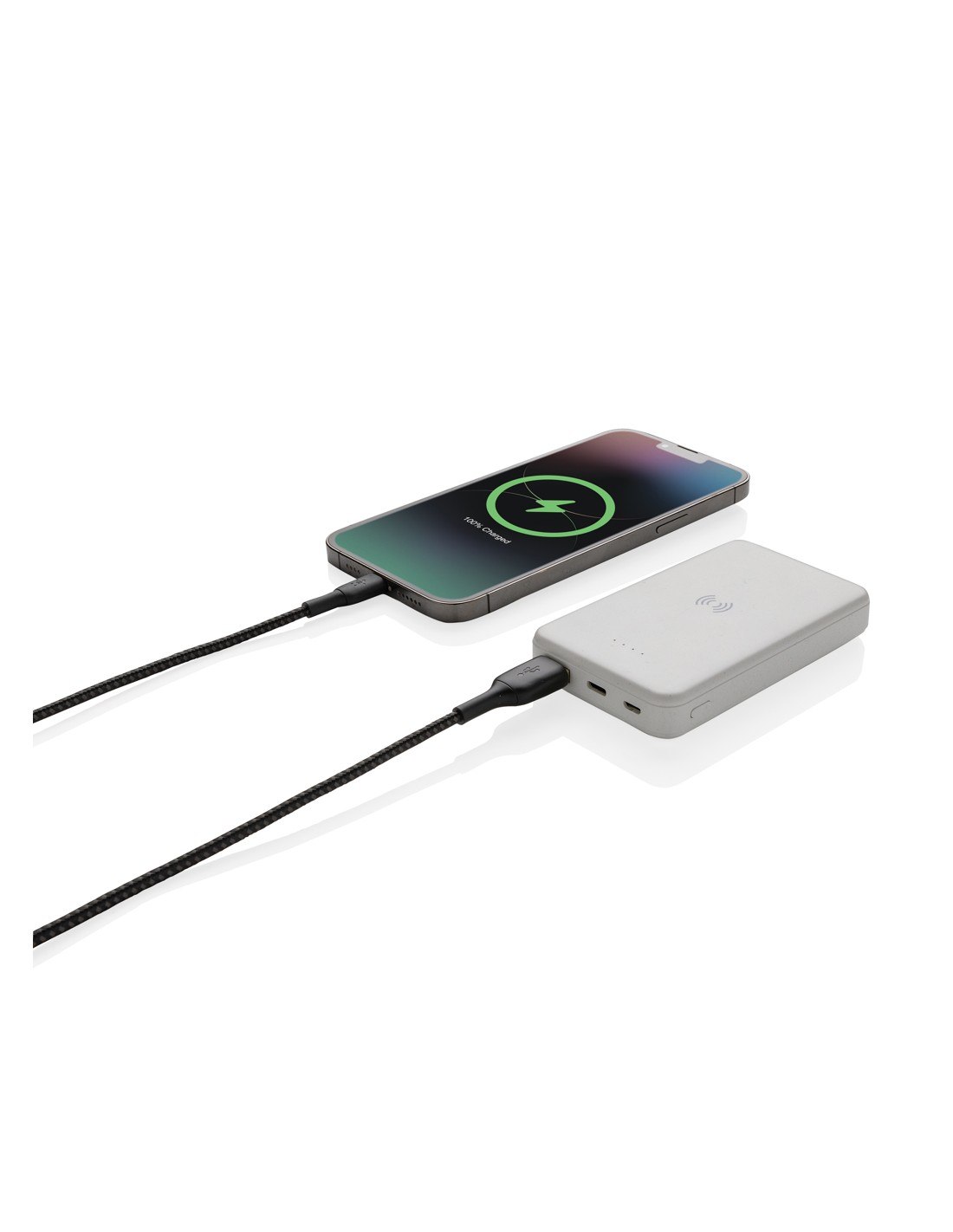 Caricatore wireless magnetico in bamboo (15W) e PB (5000 mAh). Uscita: DC 9V/1.1A (18W). Compatibile con iPhone® 12 e successivi. Include un anello metallico magnetico per la ricarica di altri telefoni. PD power per supportare i laptop di nuova generazione.