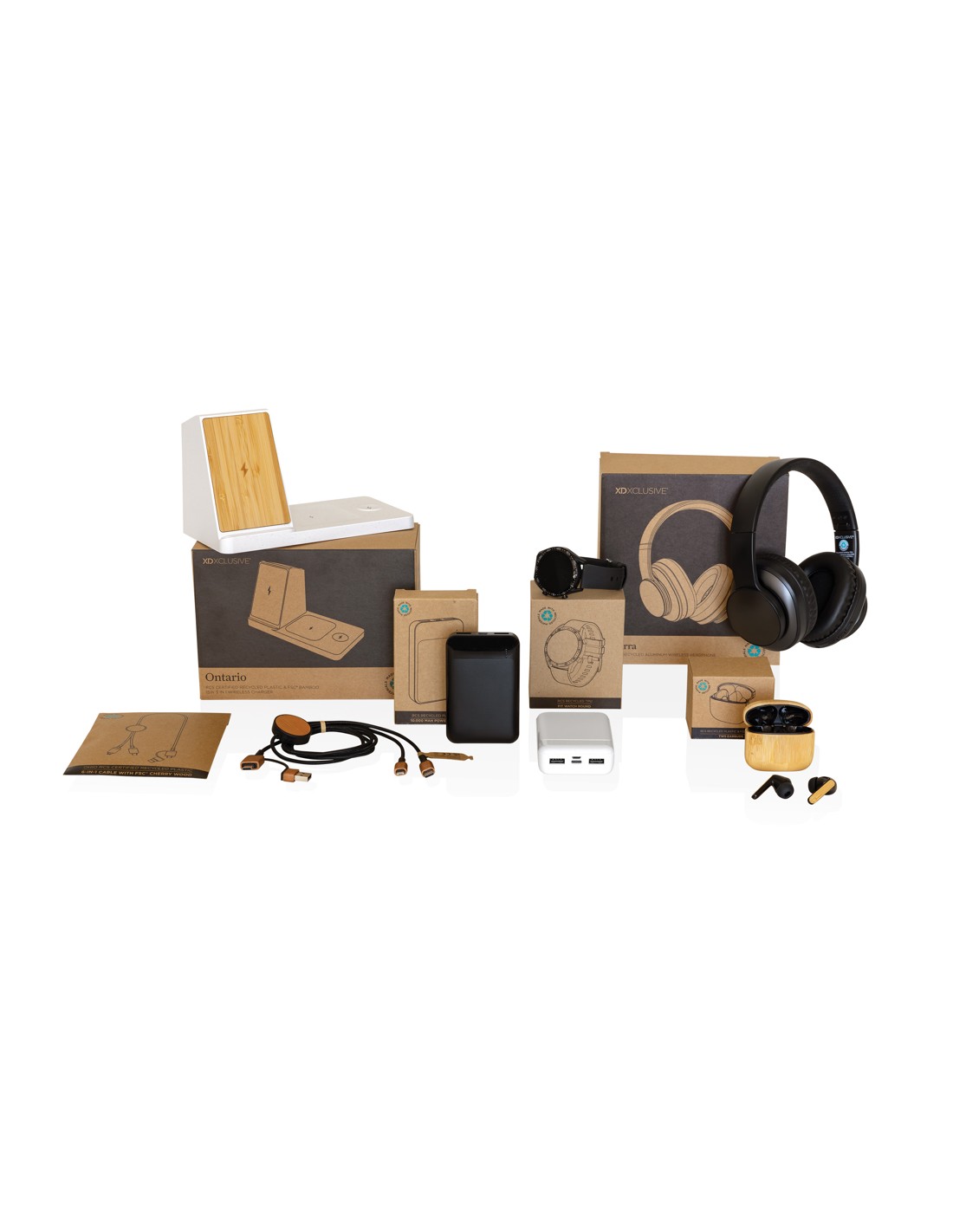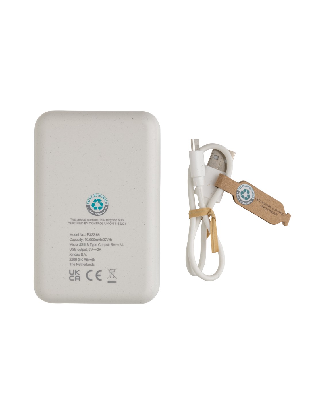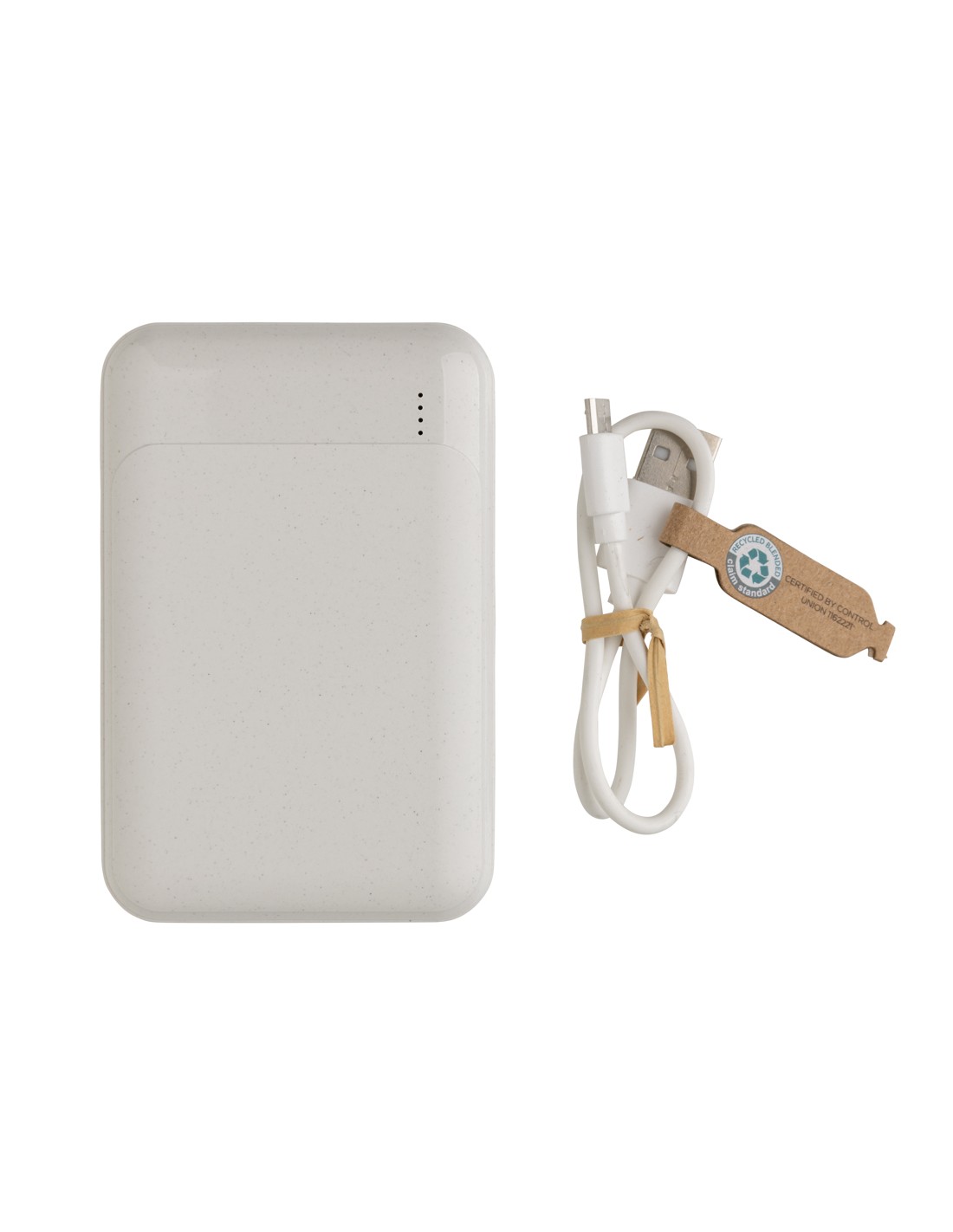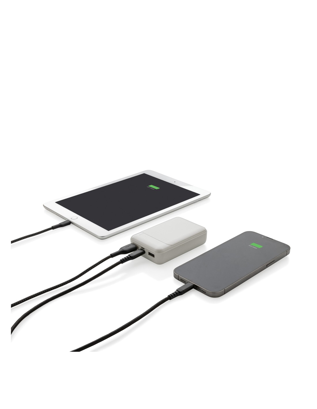 Power bank solare 8000 mAh con luce. Include 21 luci LED, cavo USB con spina micro usb e moschettone. Corrente di uscita DC5V/1A e DC5V/2A.