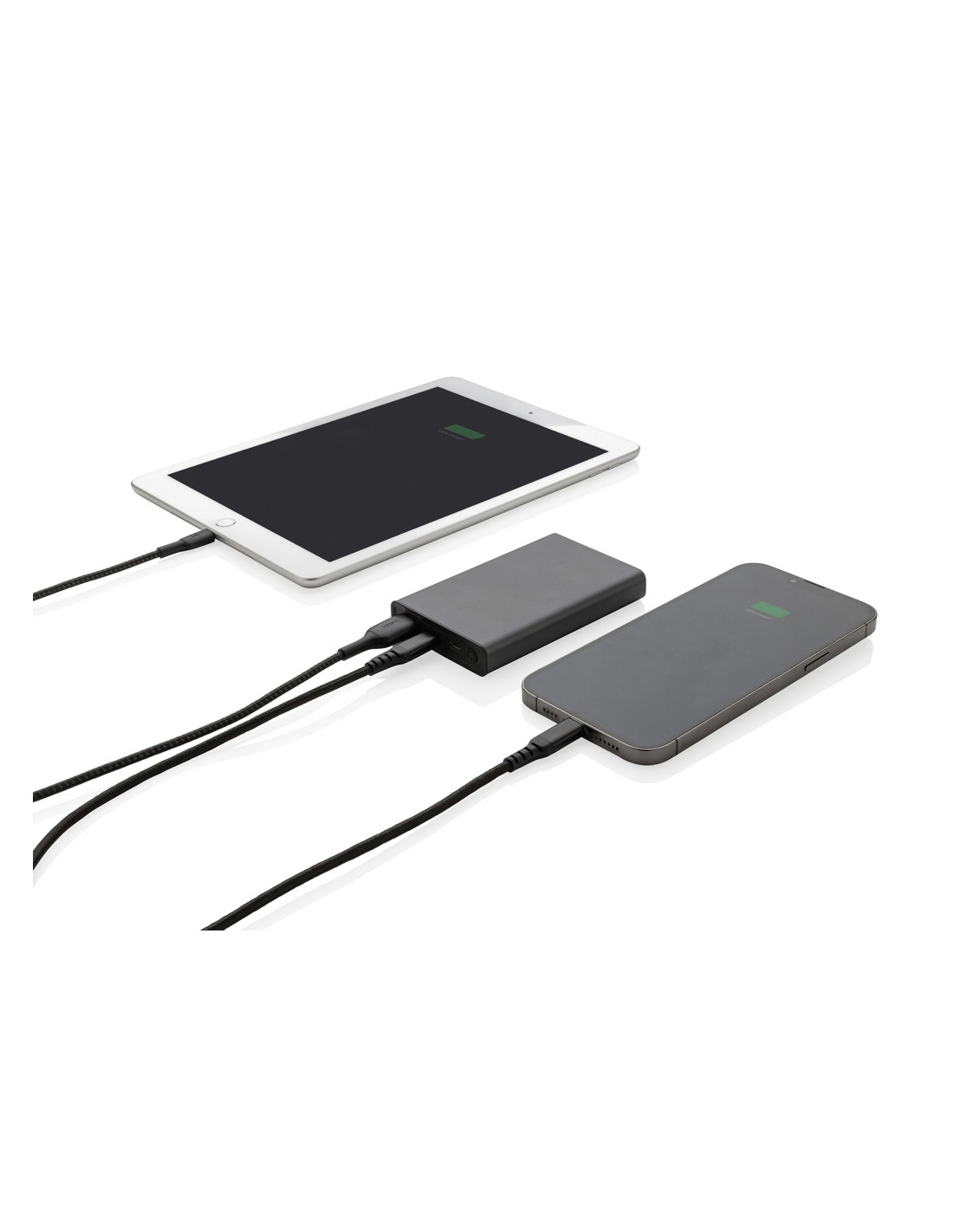 Power bank dal design sottile ed elegante con porta di ingresso/uscita di Tipo-C e 2 porte USB-A che consentono di caricare 3 dispositivi contemporaneamente. Il power bank è caratterizzato da una batteria ai polimeri di litio da 5000 mAh, che fornisce una potenza in uscita totale di max 10 W....