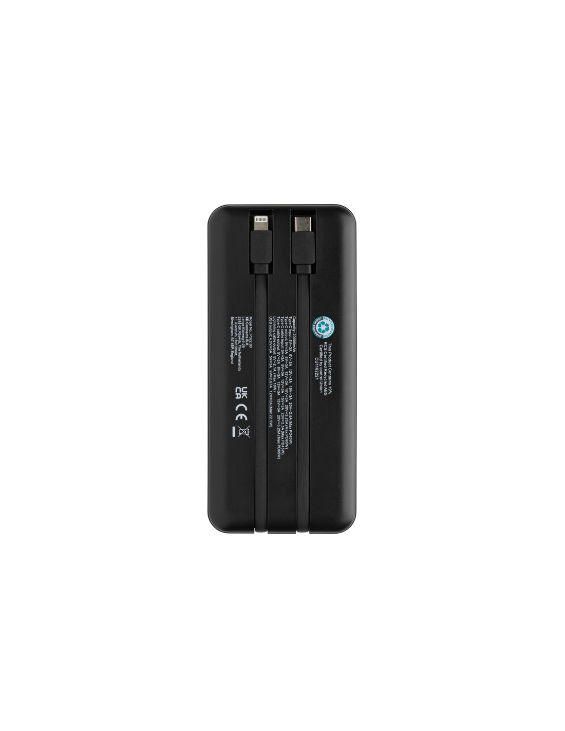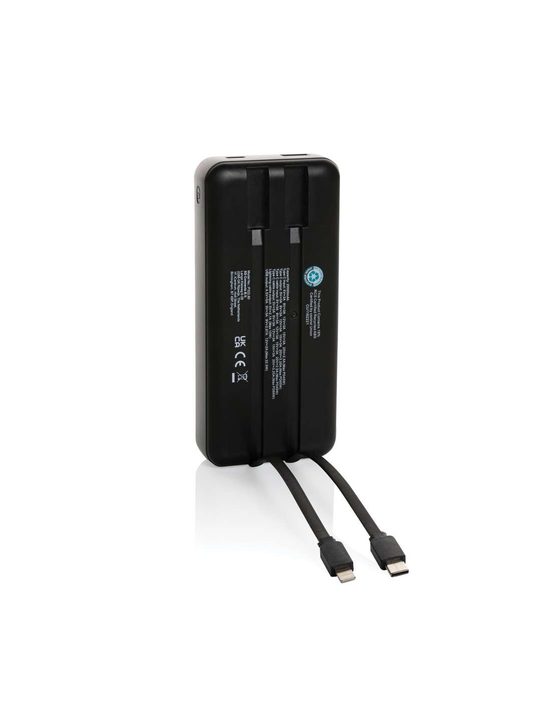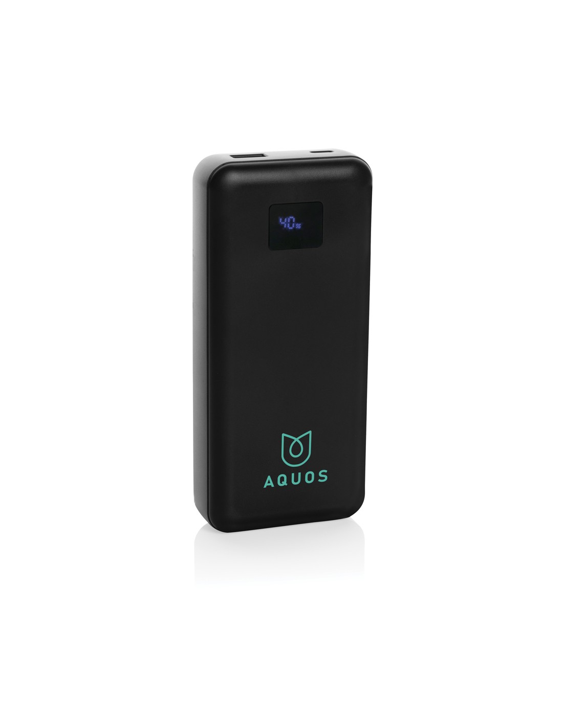 Power bank da 8000 mHa in alluminio riciclato. Adatto a smartphone, output DC5V/1A. E DC5V/2A. Include indicatore di luce e cavo USB con micro USB.