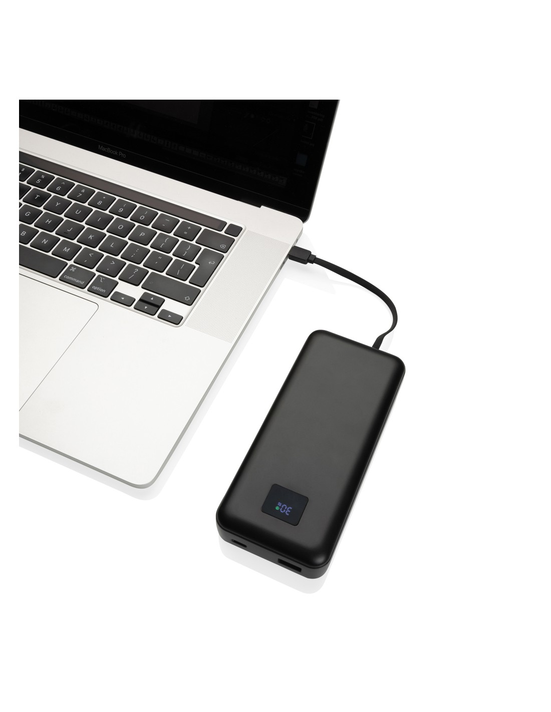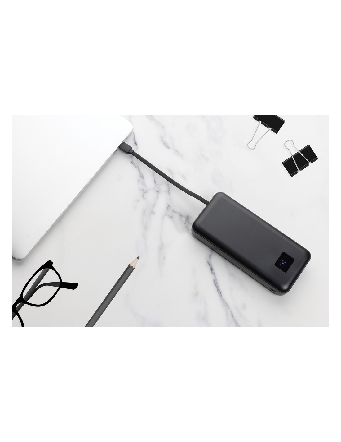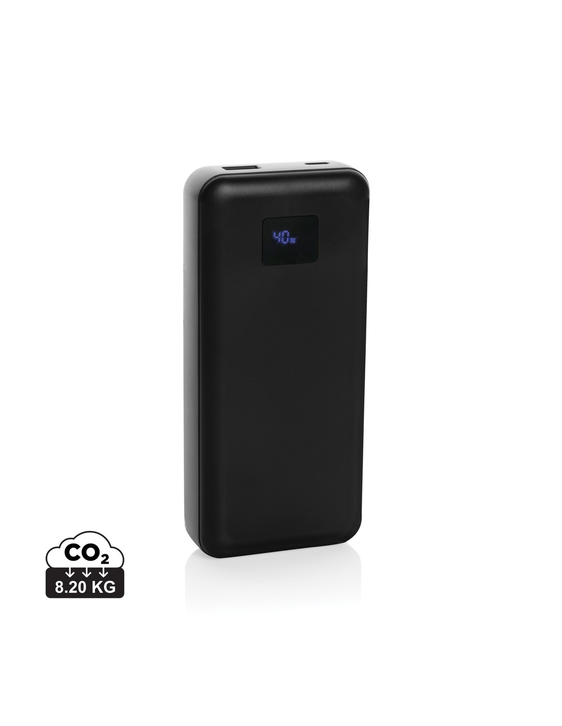 Power bank da 8000 mHa in alluminio riciclato. Adatto a smartphone, output DC5V/1A. E DC5V/2A. Include indicatore di luce e cavo USB con micro USB.