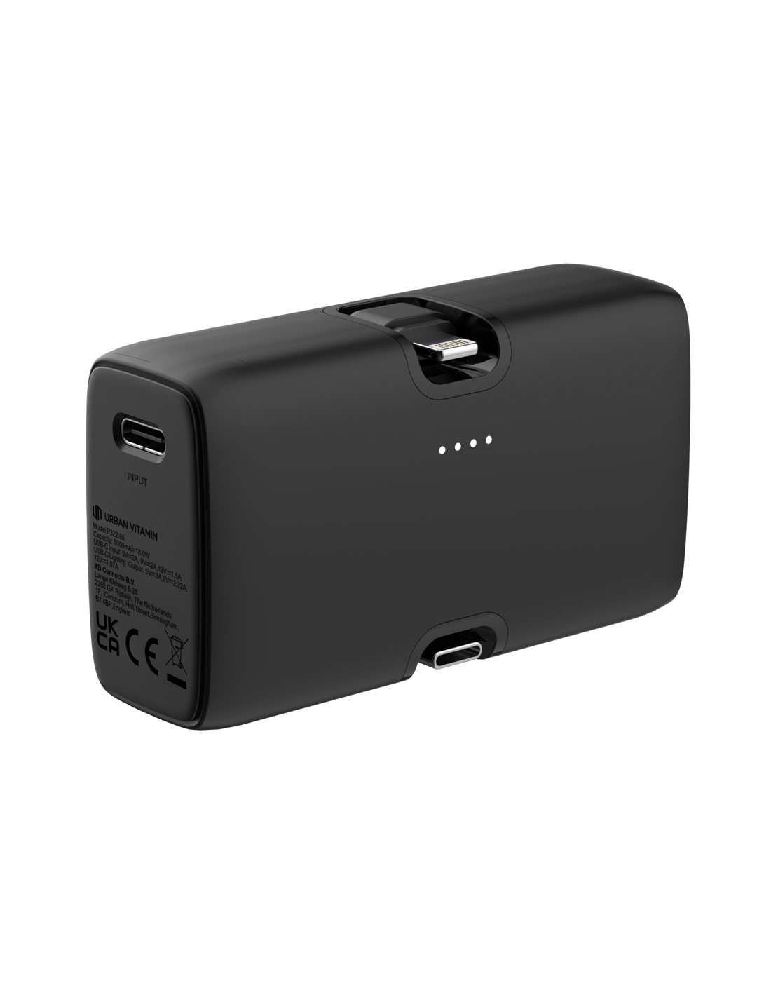 Portate in tasca l'energia da 20W e siate pronti a ricaricare velocemente ovunque vi troviate! Urban Vitamin Los Angeles è una powerbank leggera ma potente da 5000mAh. Grazie alla doppia opzione di ricarica rapida tramite il connettore iOS integrato (per iPhone 14 e precedenti) e a quello type C, potrete ricaricare il vostro telefono senza dover portare con voi alcun cavo! È persino possibile caricare due dispositivi contemporaneamente. Tutte le uscite offrono una ricarica ultraveloce da 20W per ricaricare fino al 50% in meno di 30 minuti. Oltre ai due connettori integrati, l'articolo dispone anche di una porta di ingresso type C per ricaricare rapidamente la powerbank. Dispone inoltre di un supporto integrato per ricaricare il telefono mentre si guardano film o si ascolta la musica. Realizzata con ABS riciclato RCS e PC riciclato, il contenuto riciclato totale è del 24% in base al peso totale dell'articolo. Realizzato senza PVC e in scatola a ridotto contenuto di plastica.
