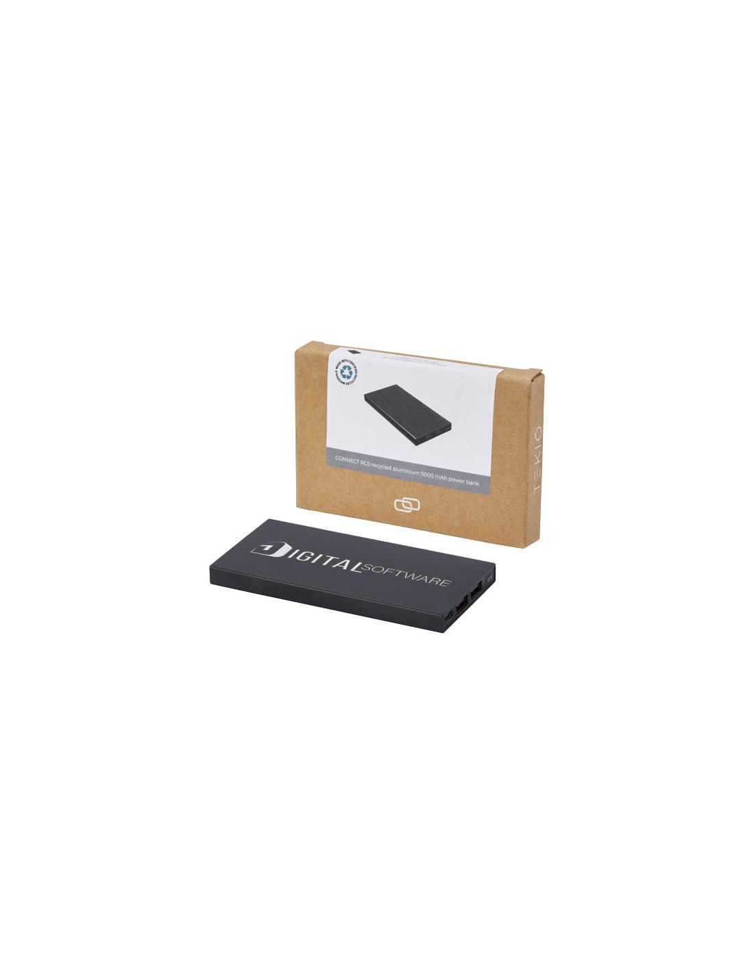 Power bank da 4000 mAh in alluminio riciclato. Corrente di uscita DC5V/2A. Include spia luminosa e cavo USB con Type-C. In/Output: Type-C.