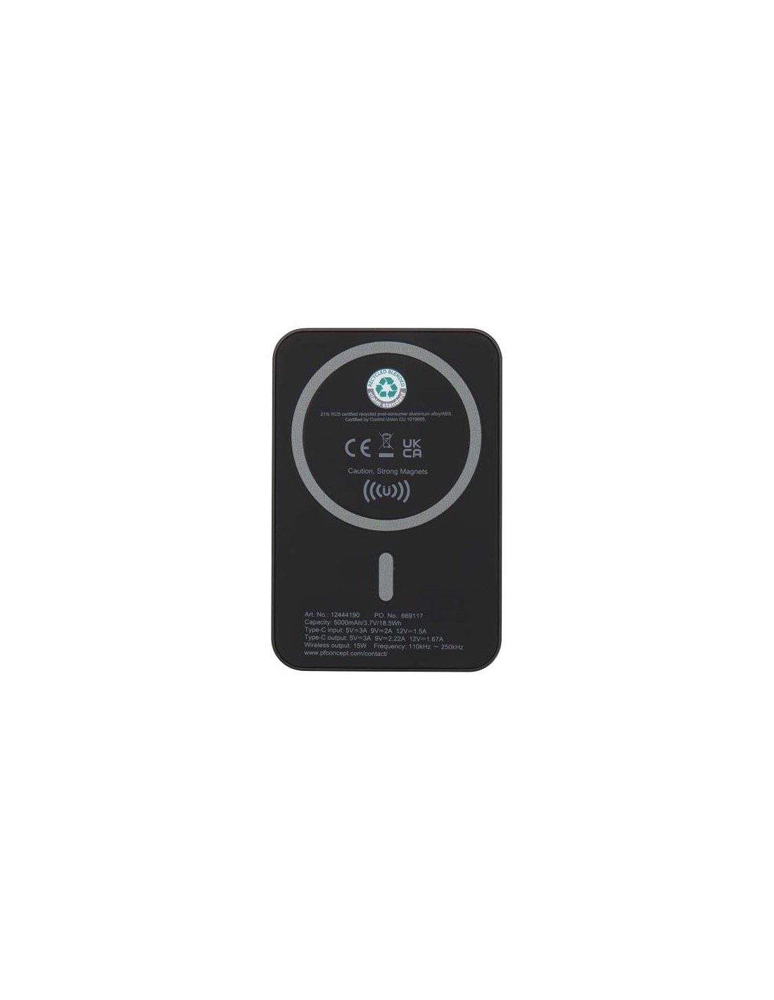 Power bank magnetico wireless da 5.000 mAh e 15 W con 20 W PD in plastica riciclata Acrab