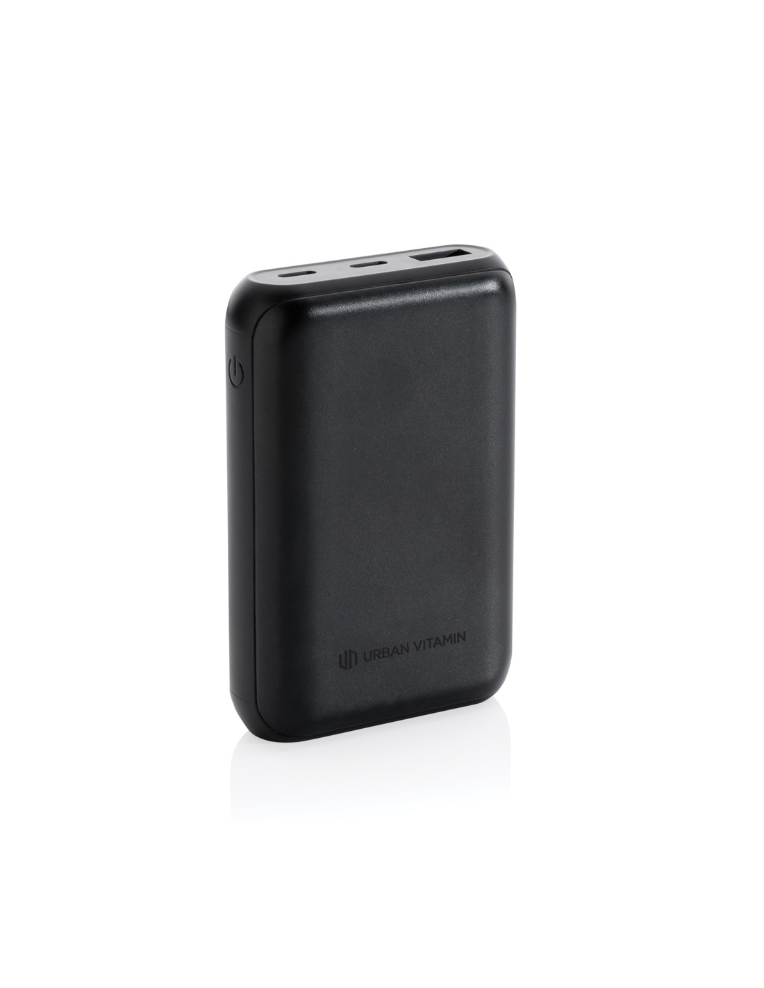 Ricarica il tuo telefono fino a 5 volte grazie a questo powerbank superveloce. Grazie alla porta ultra veloce type C 18W PD il powerbank si ricarica in tempi record. Il 50% di ricarica richiede solo 30 minuti. Dimenticati i tempi lunghi di ricarica. Il powerbank contiene una batteria da 10.000 mAh grade A di lunga durata per caricare tutti i tuoi dispositivi durante i tuoi viaggi e le tue avventure. La doppia porta USB A e type C consente di caricare fino a 3 dispositivi contemporaneamente. Gli articoli Urban Vitamin sono realizzati senza PVC e confezionati in imballaggi a ridotto contenuto di plastiche. Input type C: 5V/3A, 9V/2A; Input micro USB: 5V/2A, 9 V/2 A; Output type C: 5V/3A, 9V/2A, 12V/1,5A; Output USB: 5V/2,4A, 9V/2A, 12V/1,5A