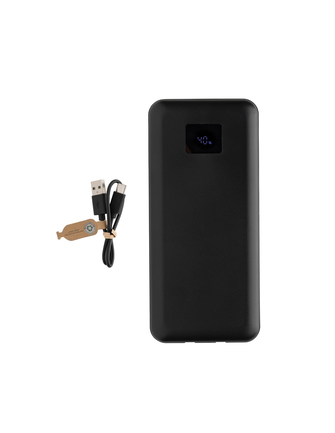Siete stanchi di cercare continuamente prese di corrente? Ecco a voi il powerbank Supercharge da 65W! Powerbank da 20.000 mAh e 20W PD, con struttura in plastica ABS riciclata certificata RCS. L'RCS (Recycled Claim Standard) è uno standard per verificare il contenuto riciclato di un prodotto lungo l'intera catena di fornitura. Contenuto riciclato totale: 13% in base al peso totale dell'articolo. Carica tutti i tuoi dispositivi con facilità grazie alla potente uscita da 65W e ai cavi integrati type C e iOS. Dite addio ai cavi aggrovigliati e alle attese per le ricariche: si ricarica velocemente a 45W tramite type C e ricarica tutti i dispositivi tramite type C (fino a 65W) e tramite USB A (fino a 22,5W). Se siete un professionista impegnato, uno studente in viaggio o un avventuriero, questa powerbank è il vostro compagno ideale. Dite addio all'ansia da batteria scarica e date il benvenuto a una ricarica affidabile e veloce con la Supercharge Powerbank da 65W. Schermo LED.