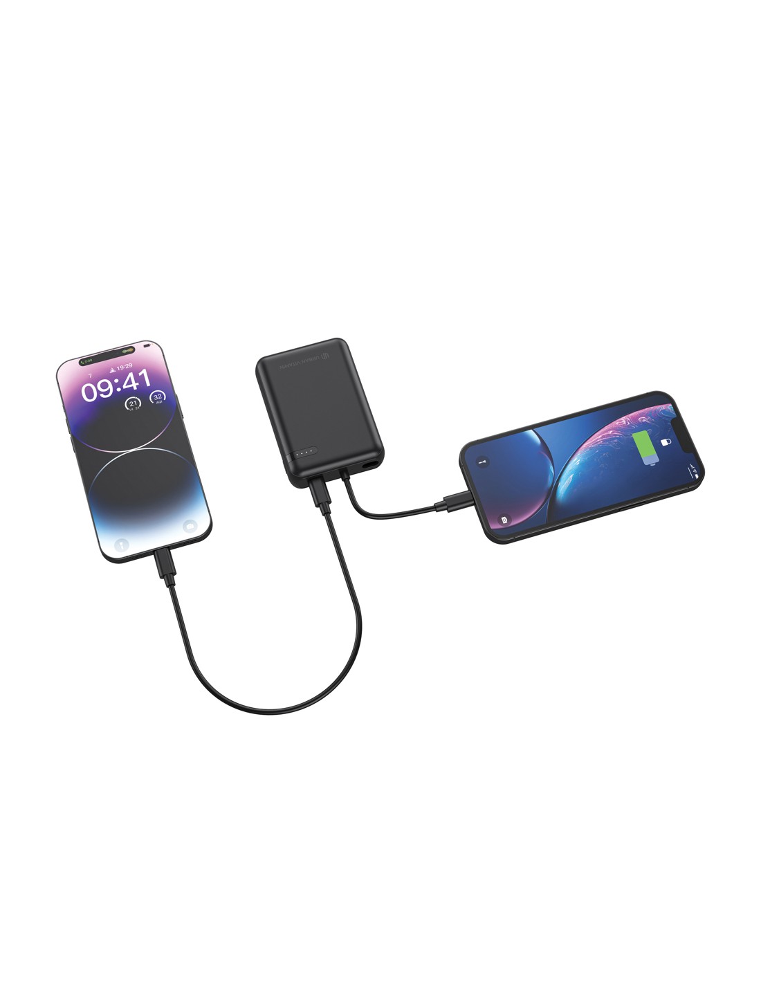 Power bank forma carta di credito, capacità 2500 mAh in ABS con cavi integrati. Il powerbank si attacca ai telefoni iOs con funzionalità magnetica. Ingresso: Type-C e uscita compatibile con dispositivi Type-C e IOS.