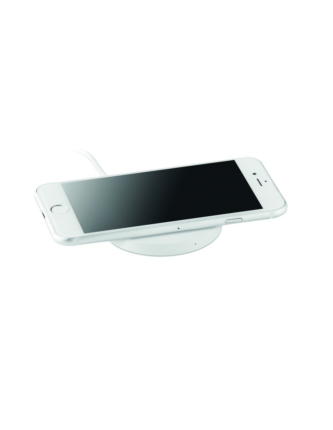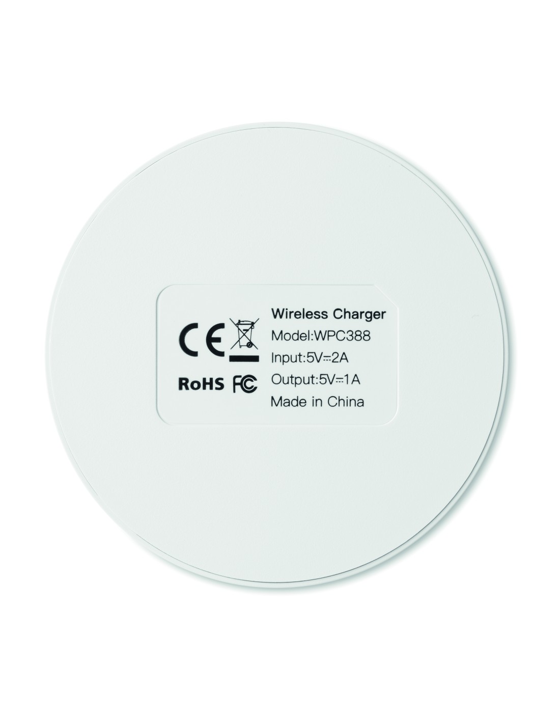 Caricatore wireless. Connettere il dispositivo al computer, appoggiarvi lo smartphone per avviare la ricarica. Output: DC5V/1A (5W). Ideale per la personalizzazione in full color.