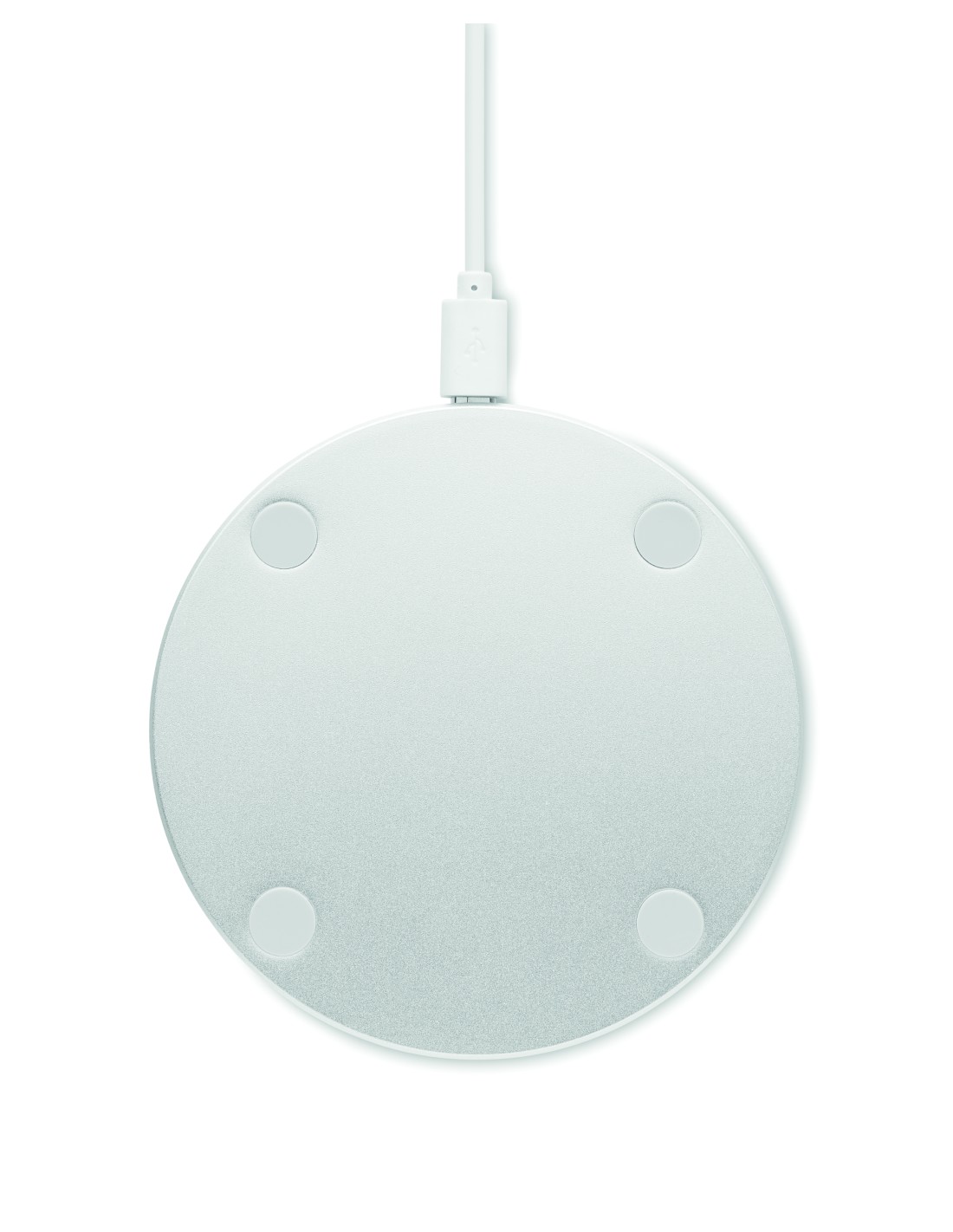Caricatore wireless in alluminio da 10W con vetro sulla parte superiore. Collegare il dispositivo al computer, appoggiarvi lo smartphone e lasciarlo caricare. Luce blu durante la carica. Uscita: DC 9V/1.1A.