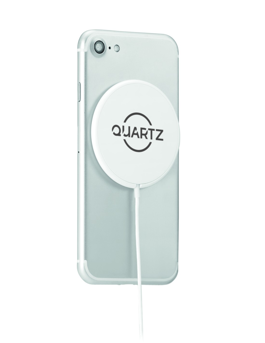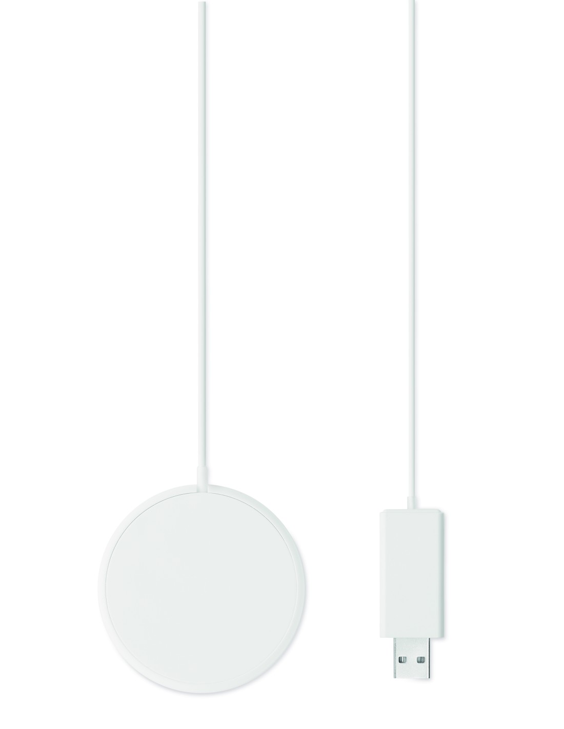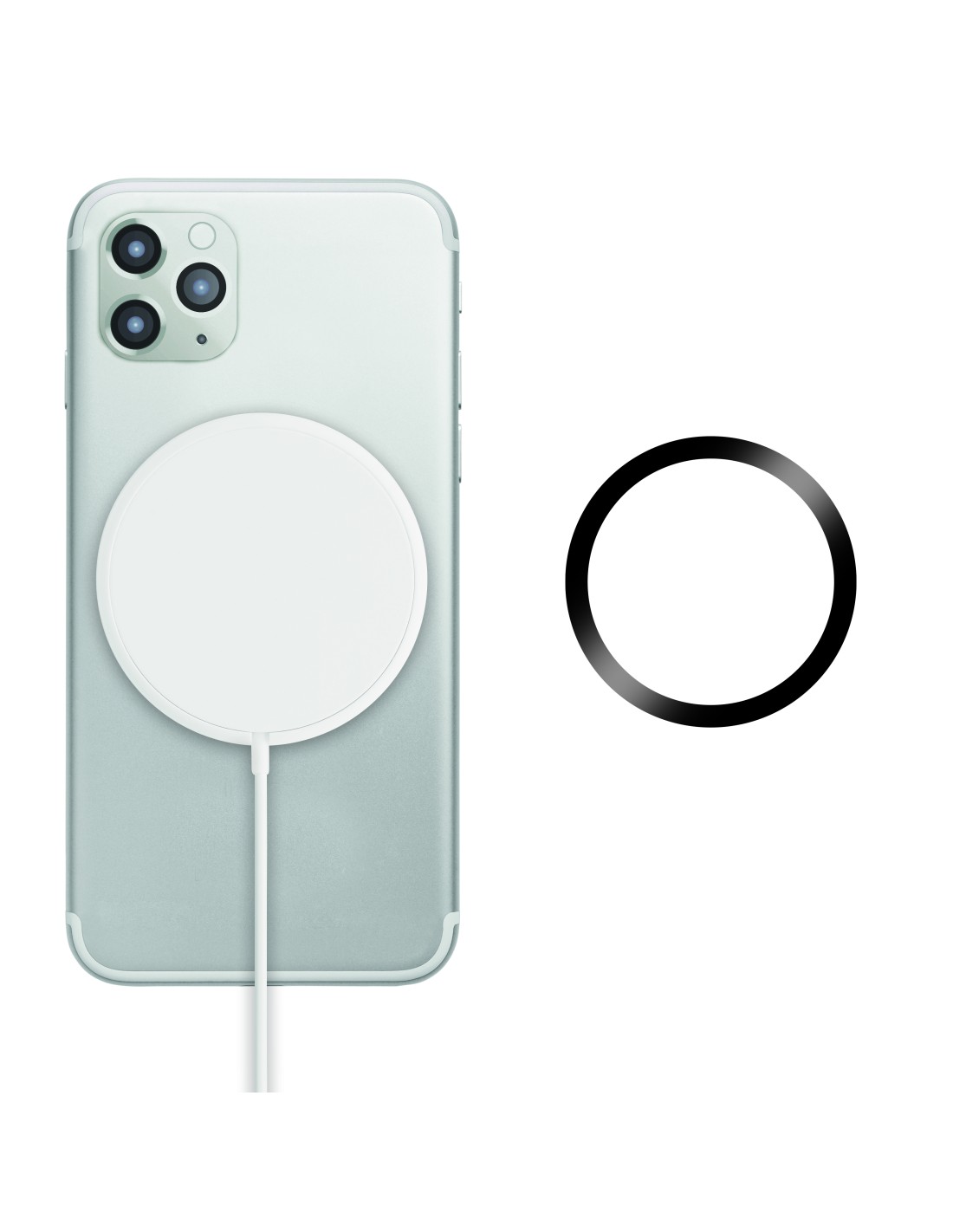 Caricabatterie wireless magnetico in ABS. Uscita: DC 9V/1.1A (10W). Compreso anello metallico magnetico per supportare la ricarica di altri telefoni ricaricabili wireless non magnetici.
