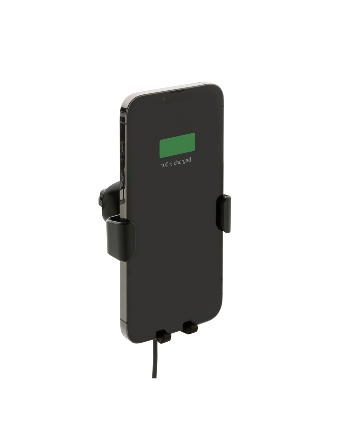 Caricatore wireless e organizer in bambù con supporto per telefono, 3 portapenne, tappetino per mouse pieghevole in RPET. Uscita: DC 9V/1,67A (15W).