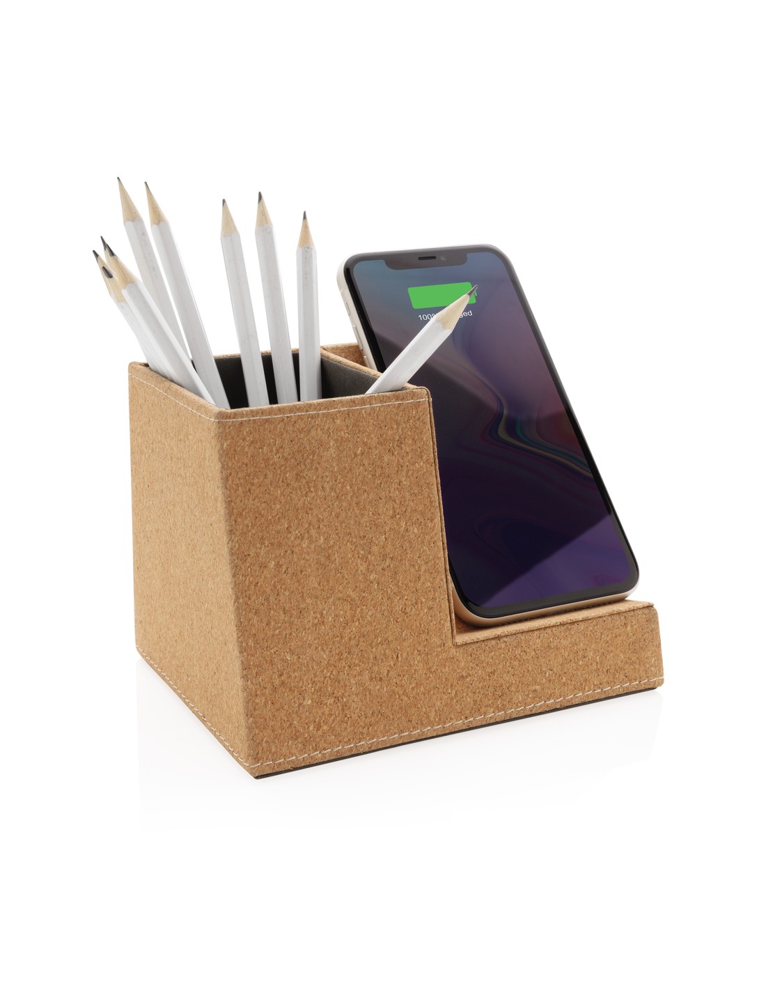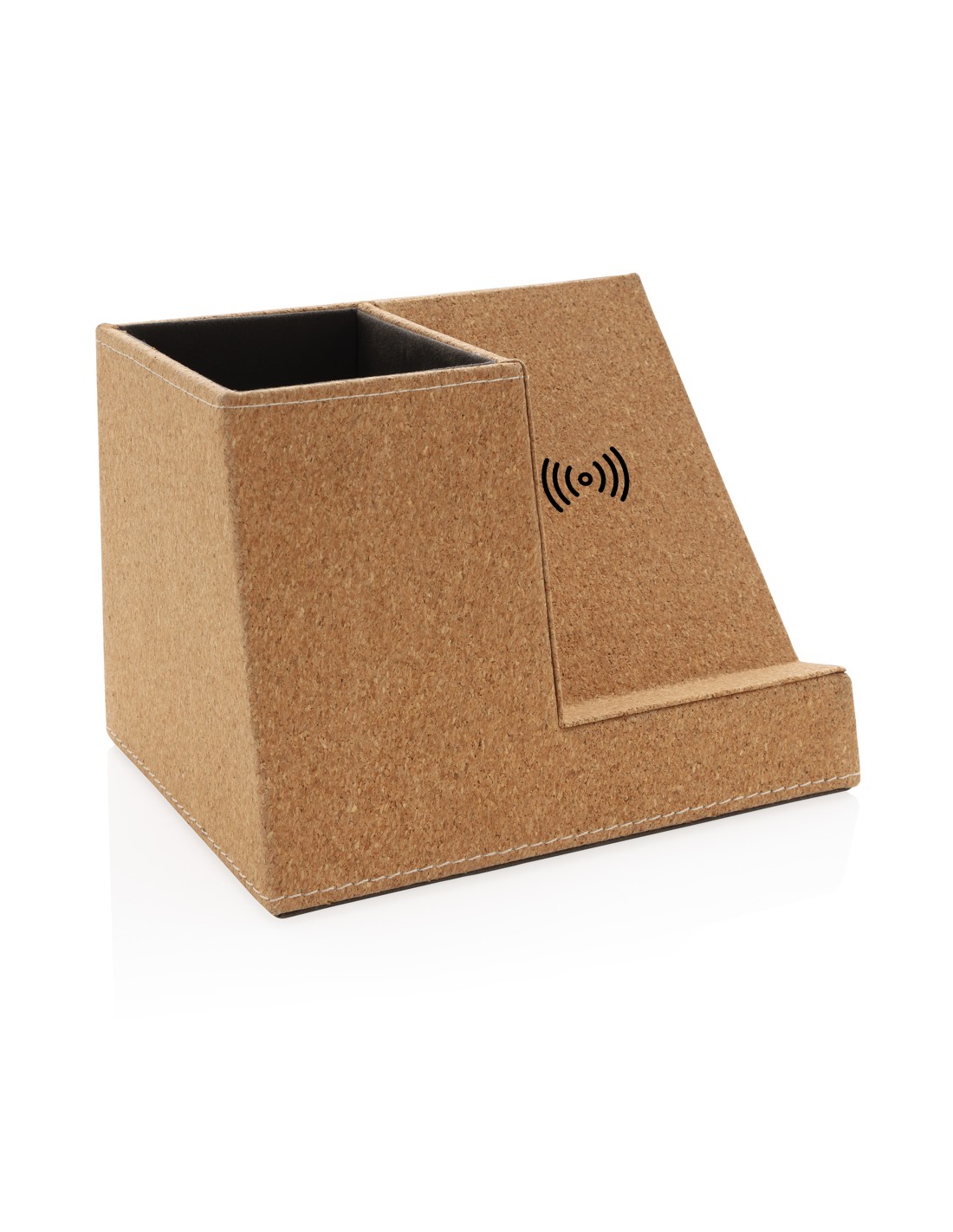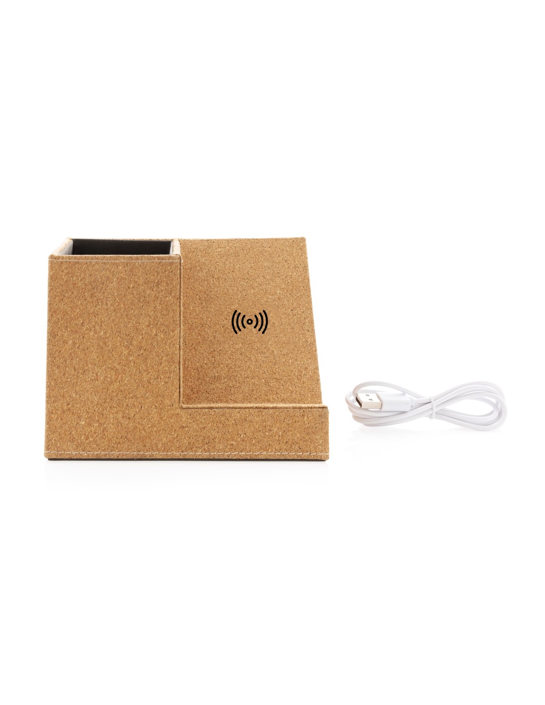 Caricabatterie wireless in bamboo e alluminio. La luce blu resta accesa durante la ricarica. Uscita: DC9V/1.1A (10W).