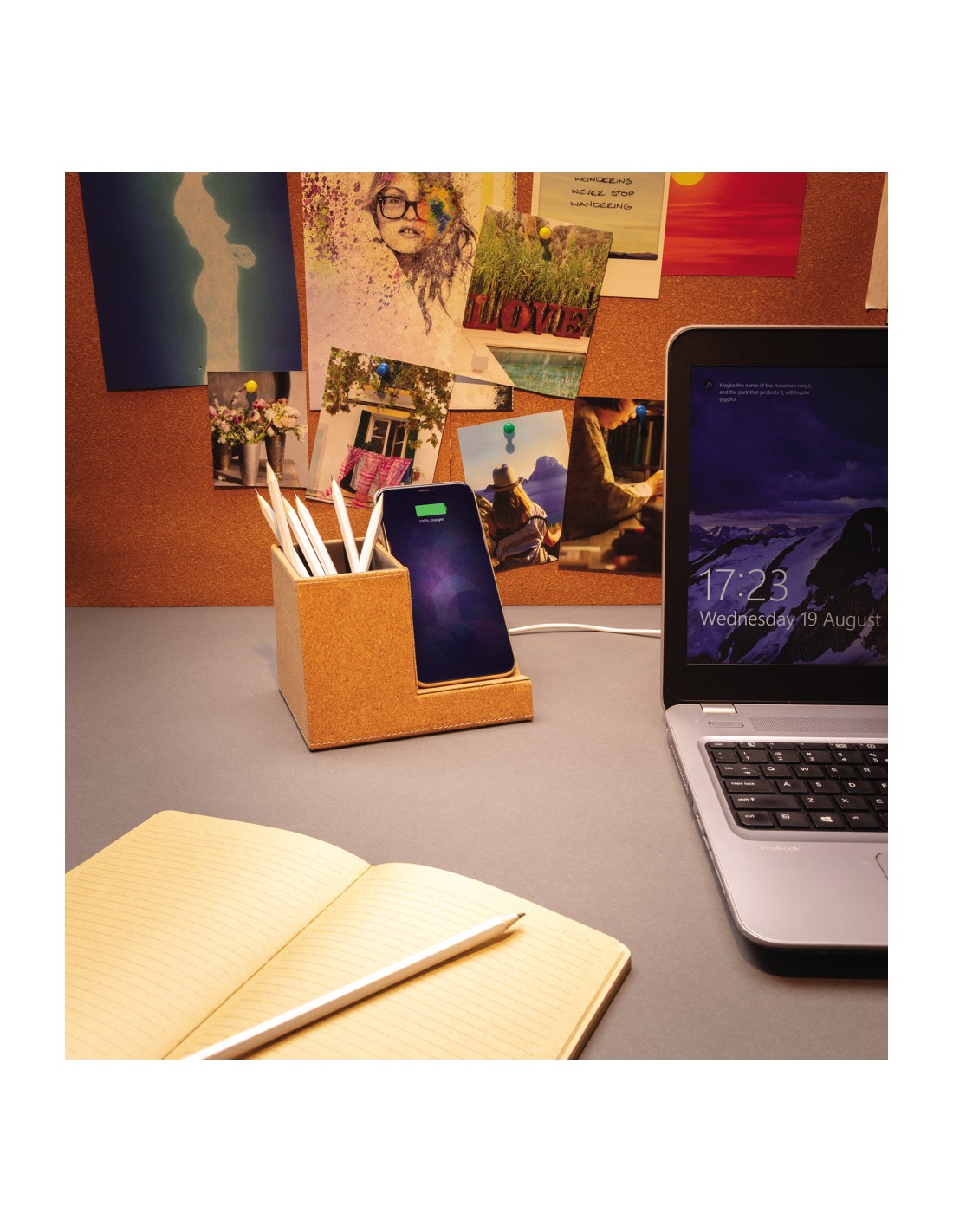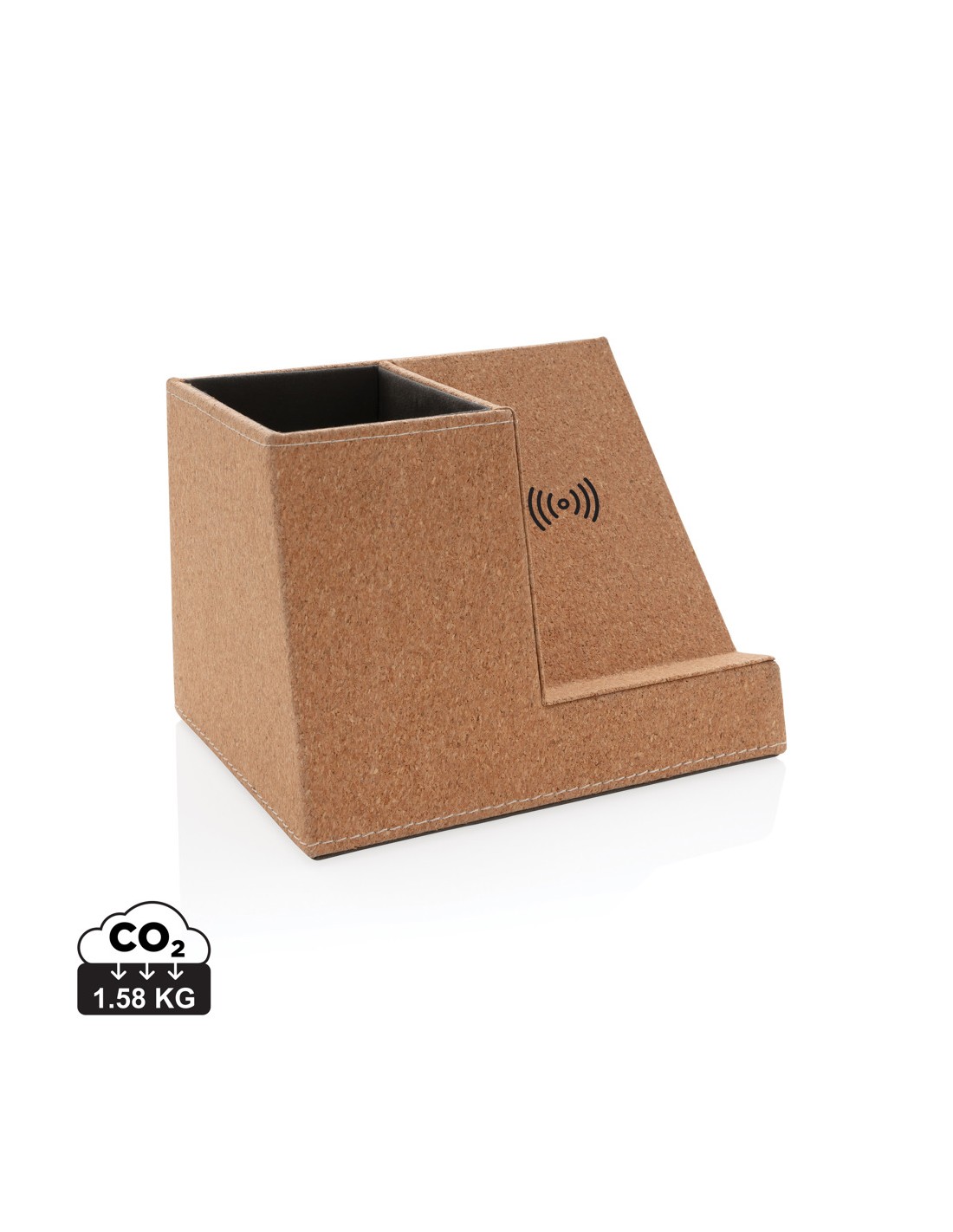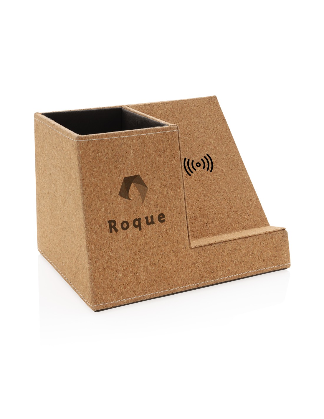 Caricabatterie wireless in bamboo e alluminio. La luce blu resta accesa durante la ricarica. Uscita: DC9V/1.1A (10W).
