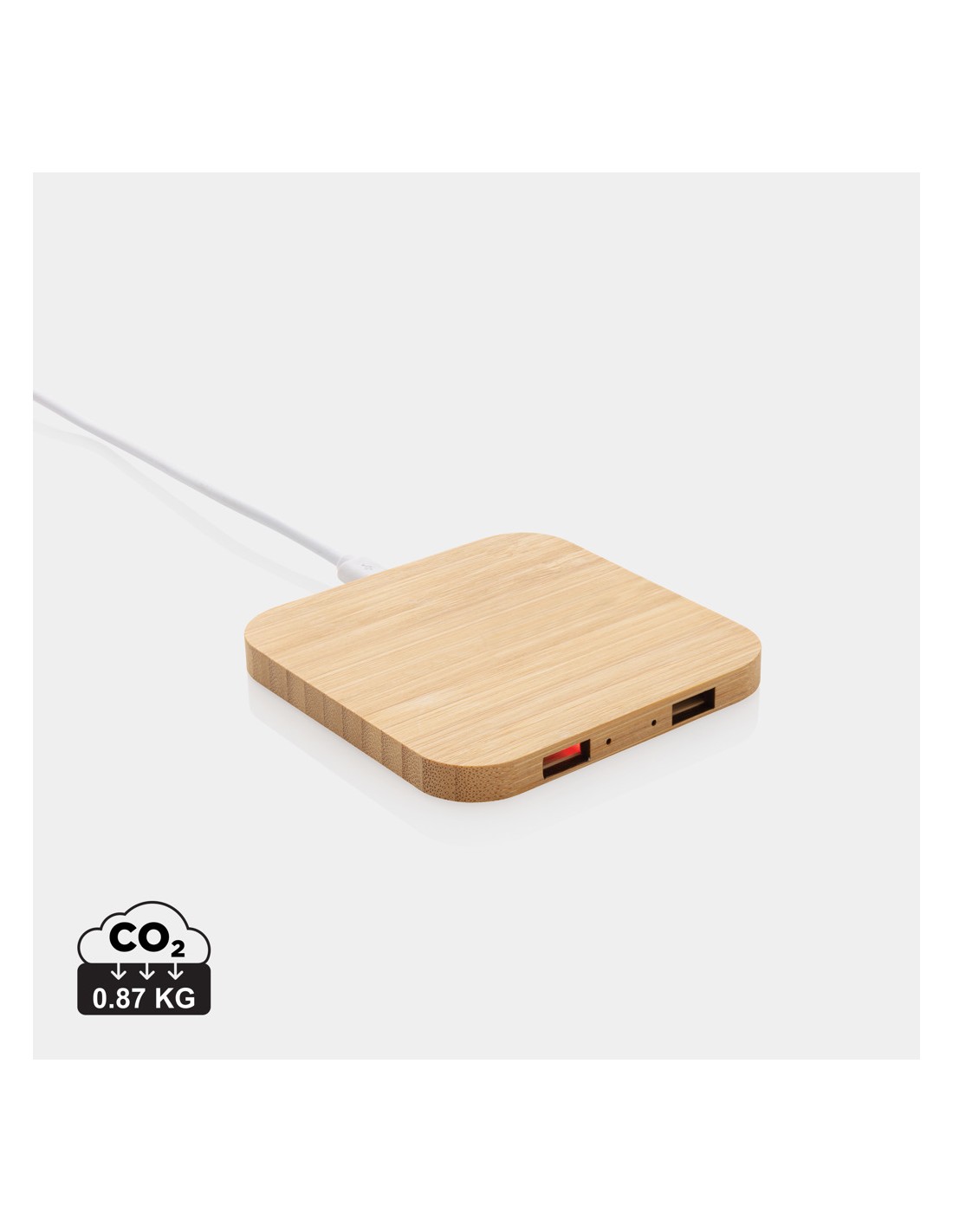 Caricatore wireless 10W con porte USB in bambù