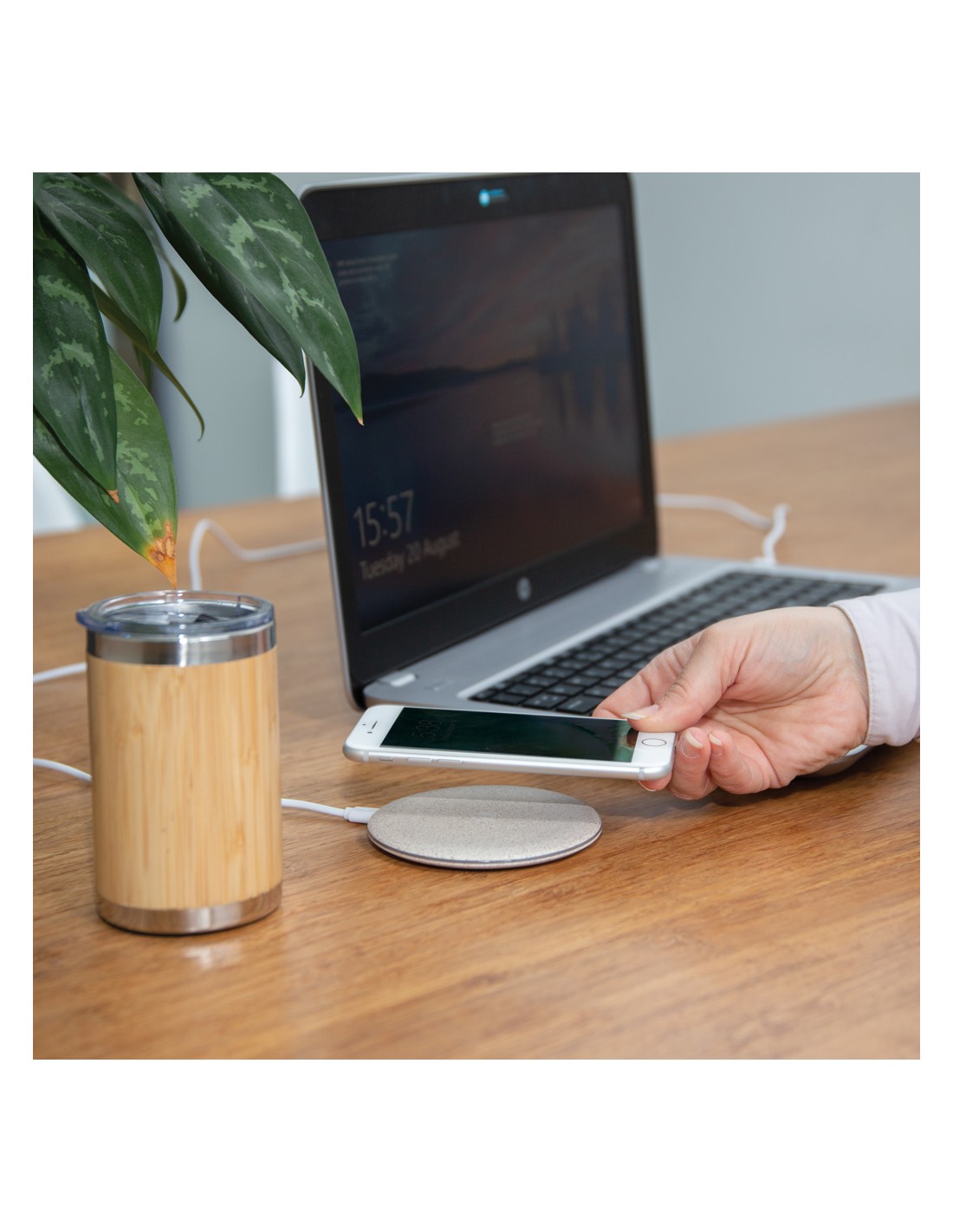 Supporto per caricabatterie wireless da 5W realizzato al 100% in bambù certificato FSC. Con cavo micro USB in TPE da 150 cm. Compatibile con tutti i dispositivi abilitati QI come Android di ultima generazione, iPhone 8 e versioni successive. Input: 5V/2A; output wireless: 5V/1A - 5W. Articolo e...