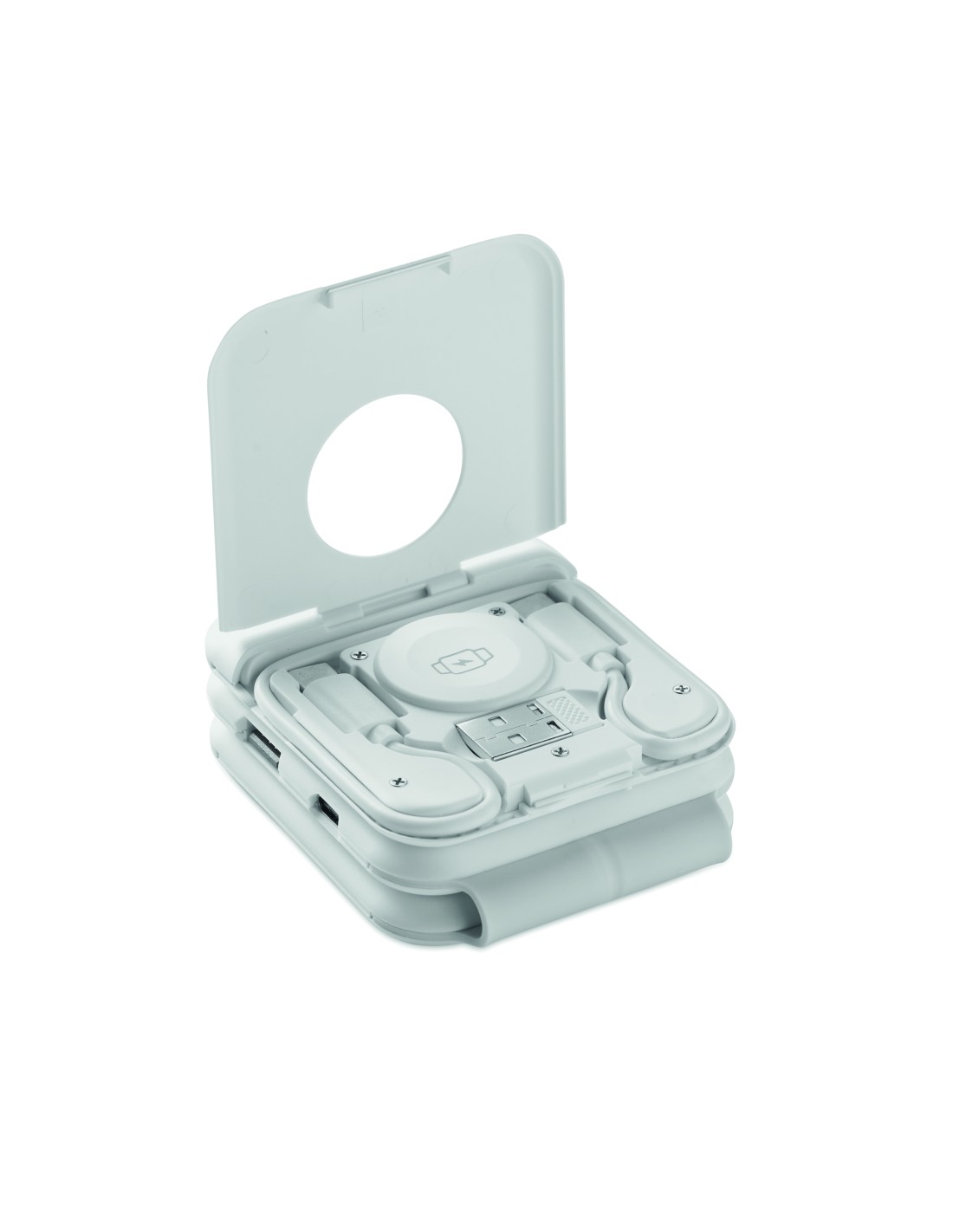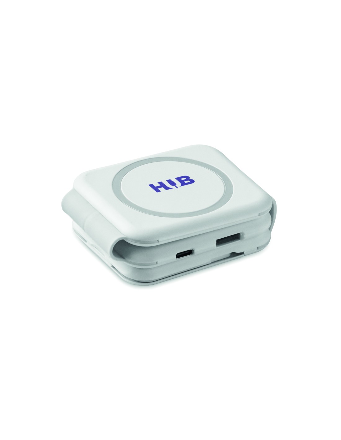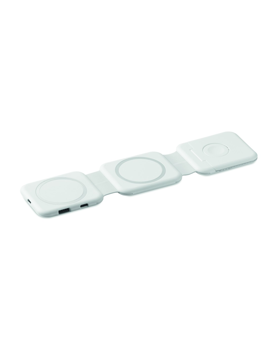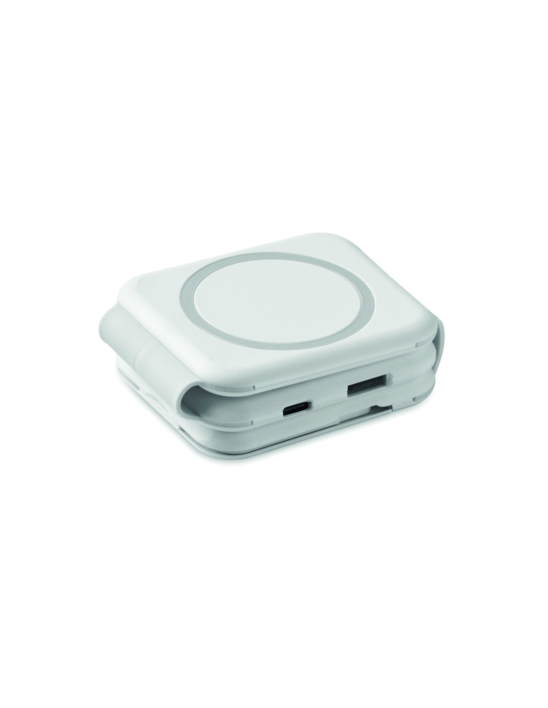 Stazione di ricarica 2 in 1 pieghevole in ABS. Include un caricatore wireless da 15 W e un caricatore per smartwatch (solo Apple®).