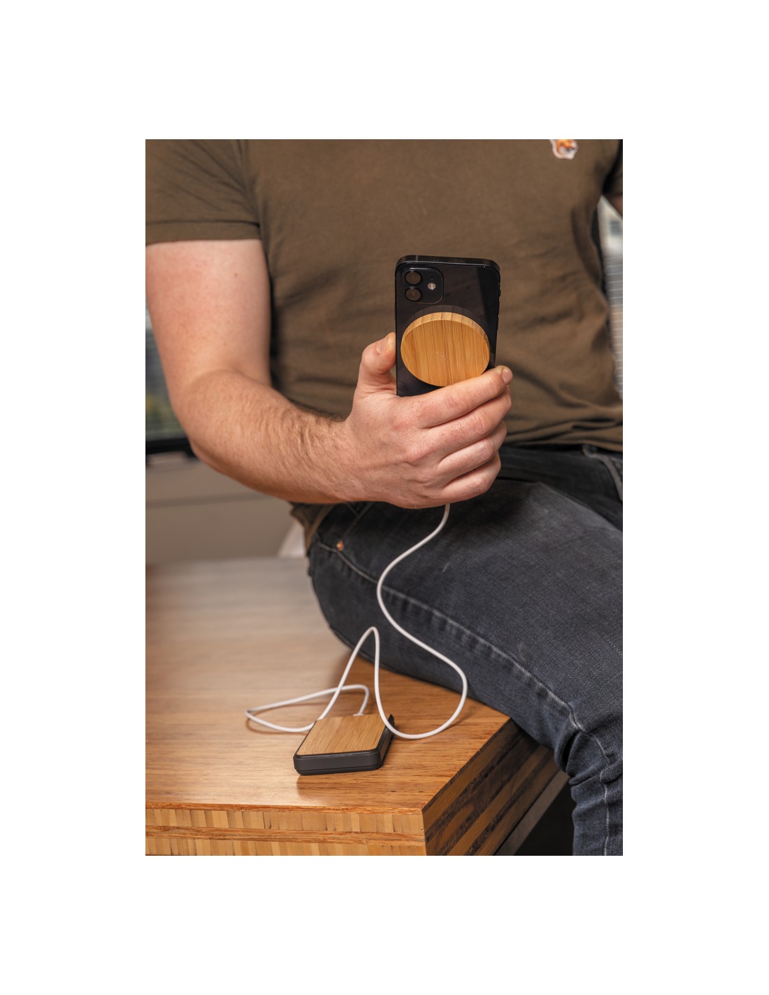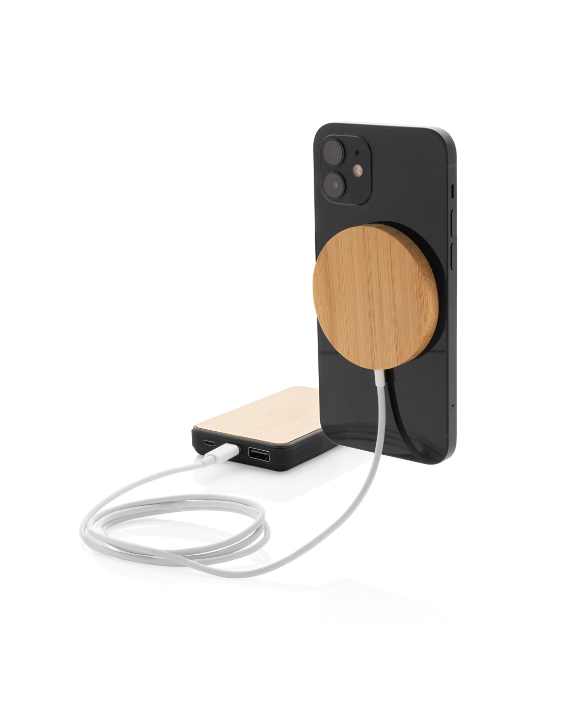 Attacca questo caricatore wireless magnetico al retro del tuo iPhone12 per ricaricarlo. Il magnete è perfettamente allineato a quello dello smartphone. Struttura in bambù. E' compatibile con tutti i dispositivi abilitati QI quali ultimi Android e iPhone8 e successivi. Include cavo micro USB da 100 cm in TPE. L'articolo e tutti gli accessori non contengono PVC. Input DC 5V/1.5A; Output 5V/2.0A (10W). Include 11 magneti di alta qualità N52H resistenti al surriscaldamento.