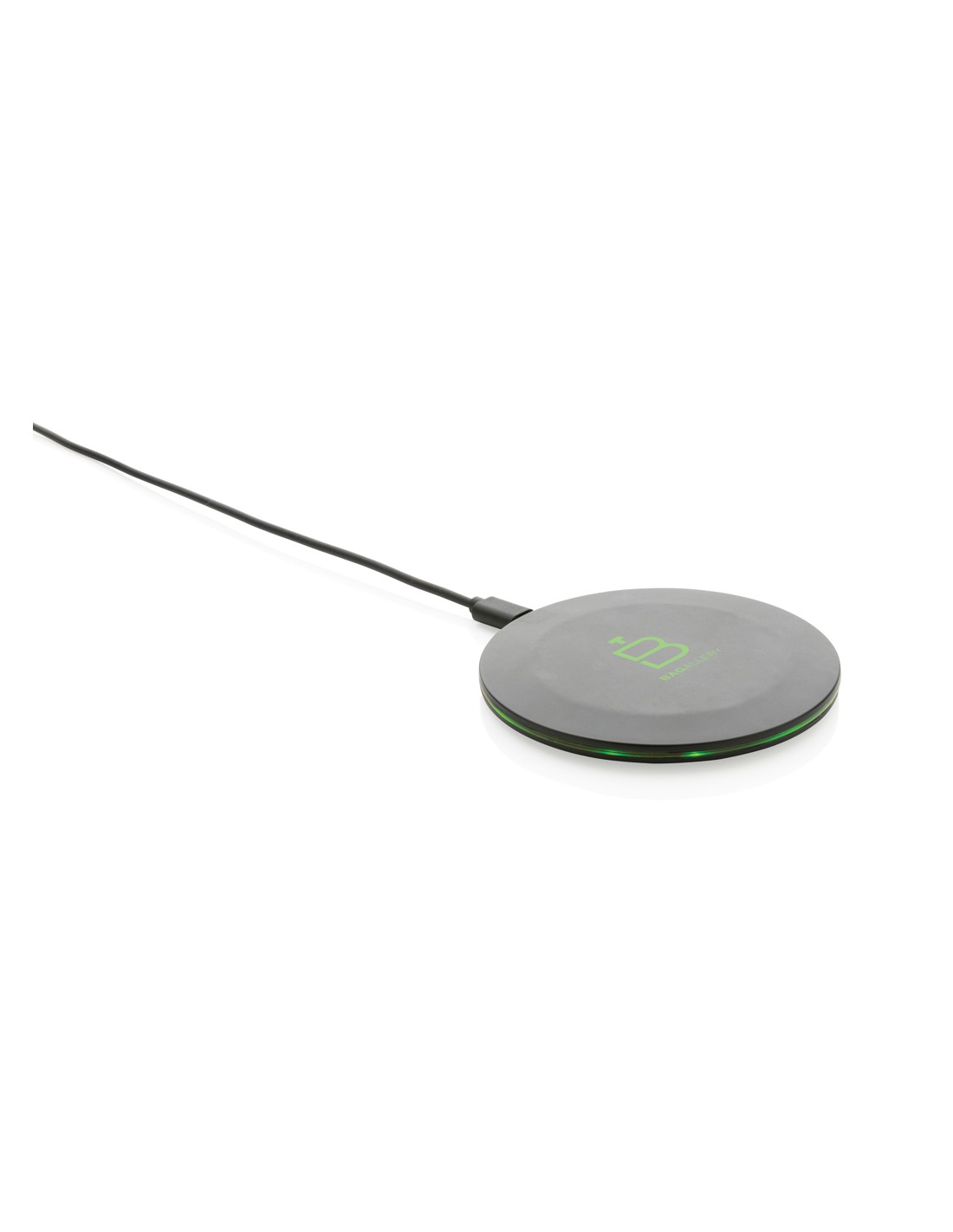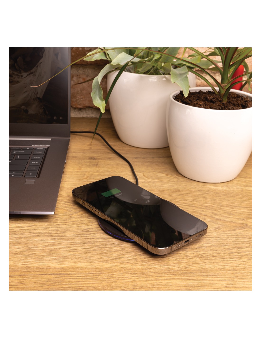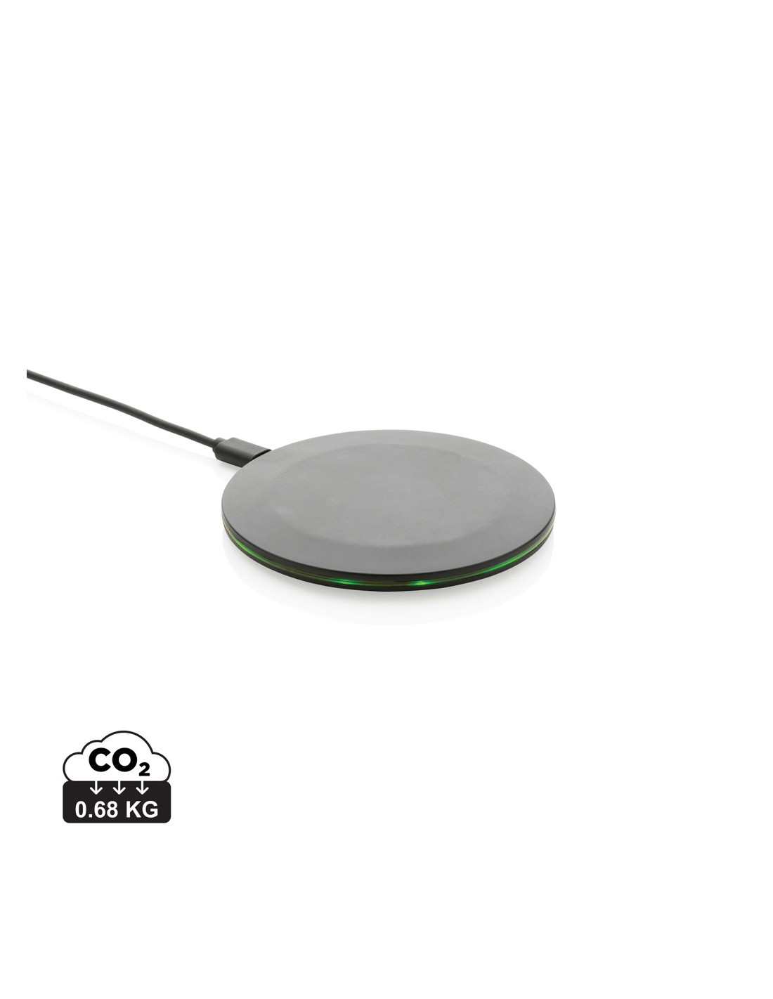 Caricatore wireless ultra veloce da 15W realizzato con ABS riciclato certificato RCS (Recycled Claim Standard). Contenuto totale riciclato: 66% in base al peso totale dell'articolo. La certificazione RCS garantisce una filiera completamente certificata dei materiali riciclati. Ricarica wireless compatibile con Android ultime generazioni, iPhone 8 e superiori. Articolo e accessori non contengono PVC. Include cavo di ricarica type C da 120 cm in TPE riciclato certificato RCS. Confezionato in scatola FSC mix. TypeC in; Input: 5V/2A; 9V/2A; 12V/1,5A; output wireless 5V/1A;9V/1.1A; 9V/1,67A (15 W).