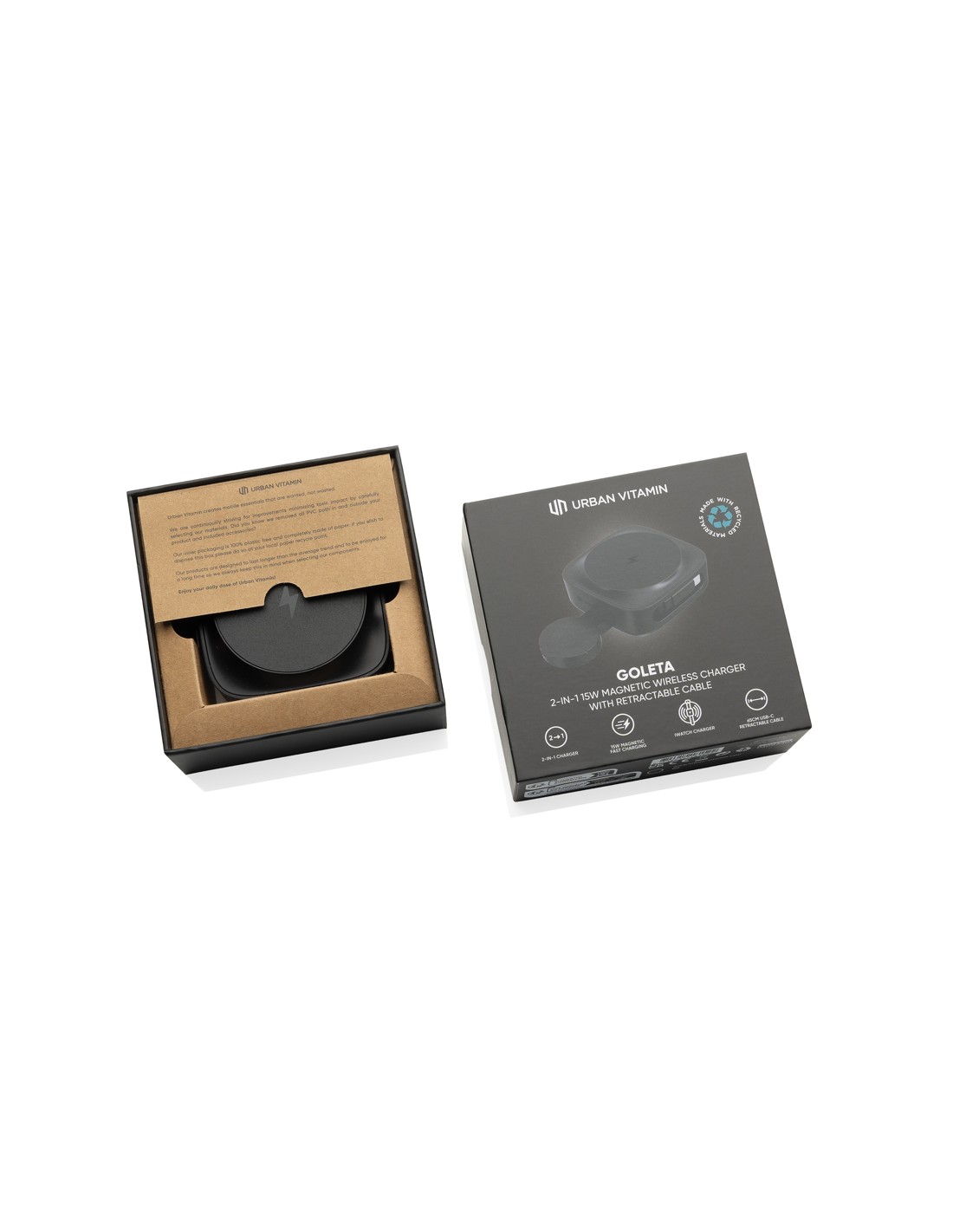 Stazione di ricarica wireless da 5W realizzata con un mix di plastica e paglia di grano, per ridurre la quantità di plastica necessaria. Per caricare un dispositivo senza la tecnologia wireless serve un ricevitore di ricarica wireless o una custodia ricevitore esterna. Confezionato in una scatola...