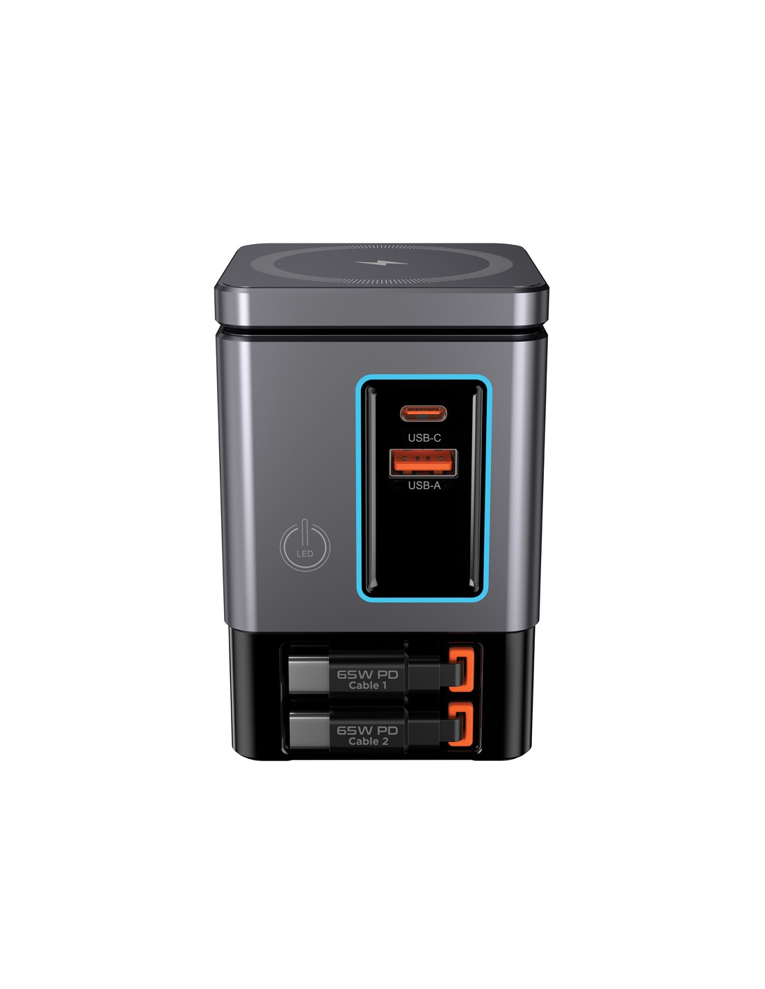 Caricabatterie wireless in bamboo e alluminio. La luce blu resta accesa durante la ricarica. Uscita: DC9V/1.1A (10W).