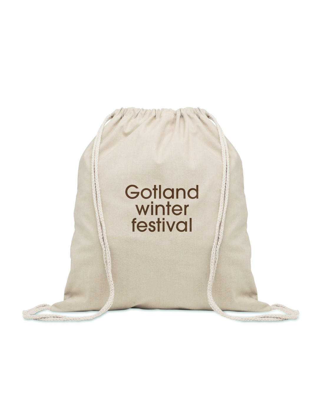 Shopper in cotone riciclato pre-consumo (70%) e RPET (30%). 140 gr/m². Questo articolo può restringersi dopo la stampa.