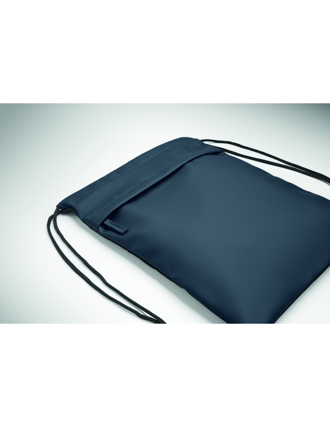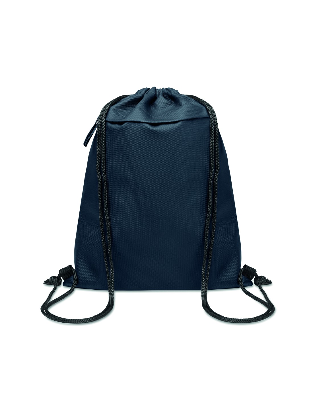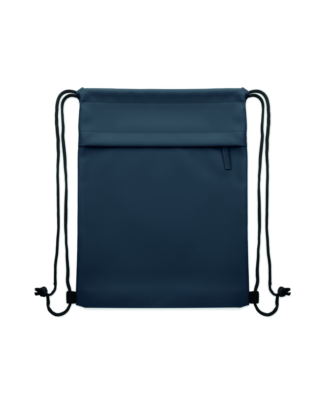 Borsa con coulisse con rivestimento in PU in poliestere 600D RPET e fodera in poliestere 190T RPET. Tasca frontale con cerniera.
