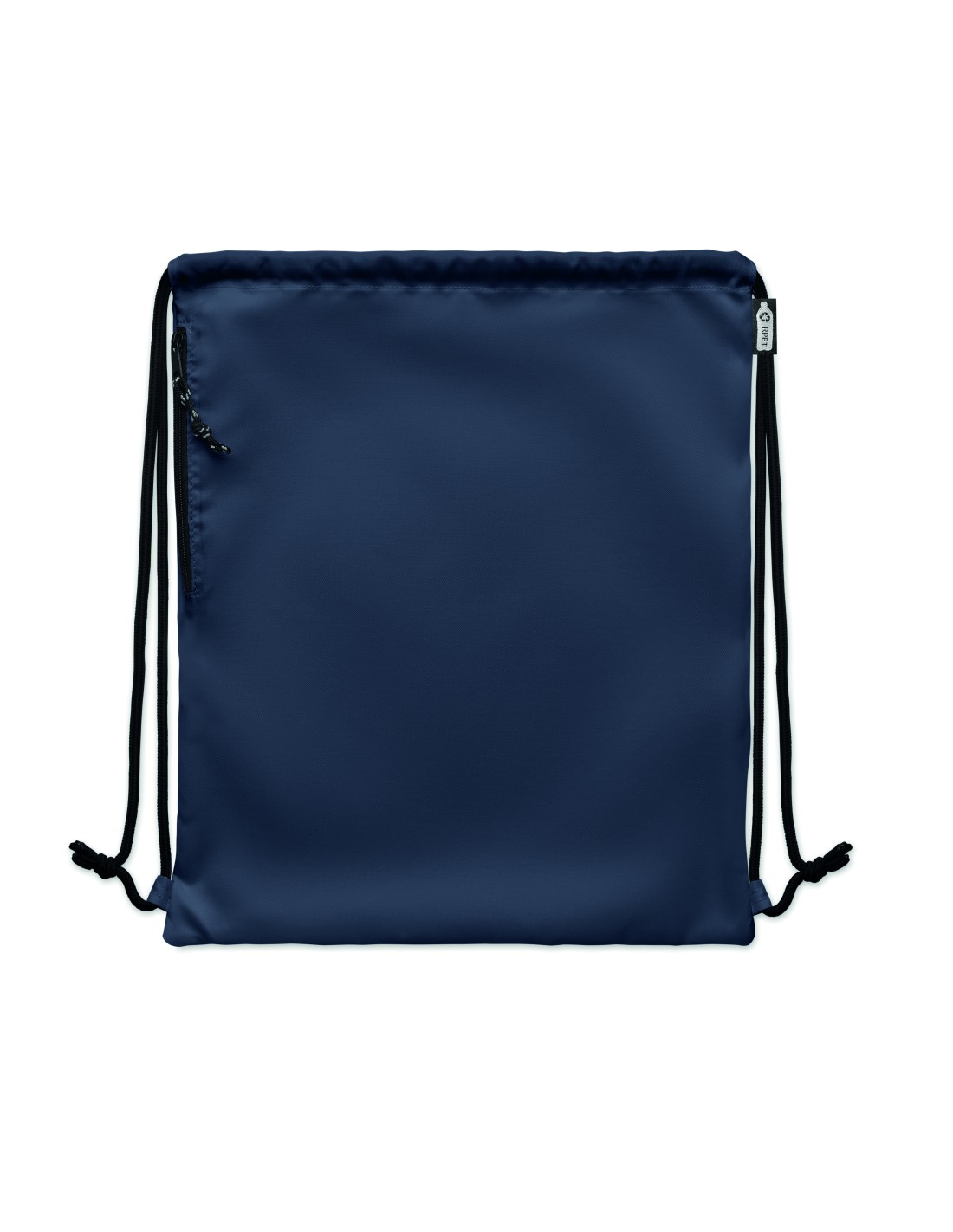 Sacca in RPET 190T con cordini in PP. Materiale proveniente da bottiglie riciclate.