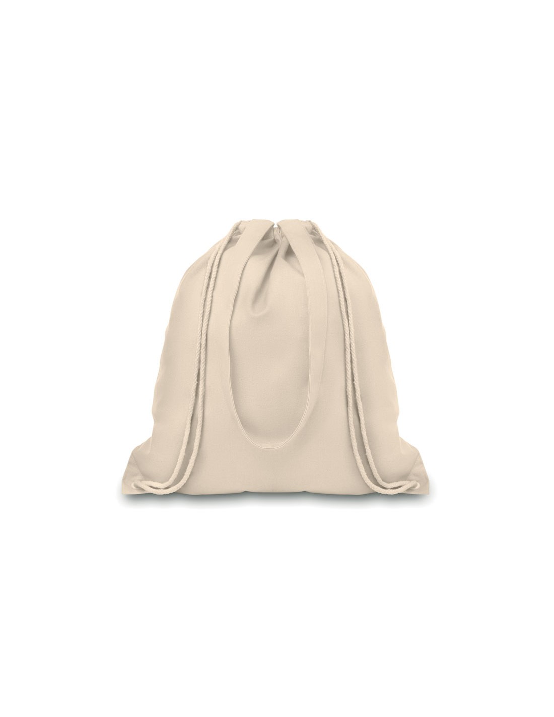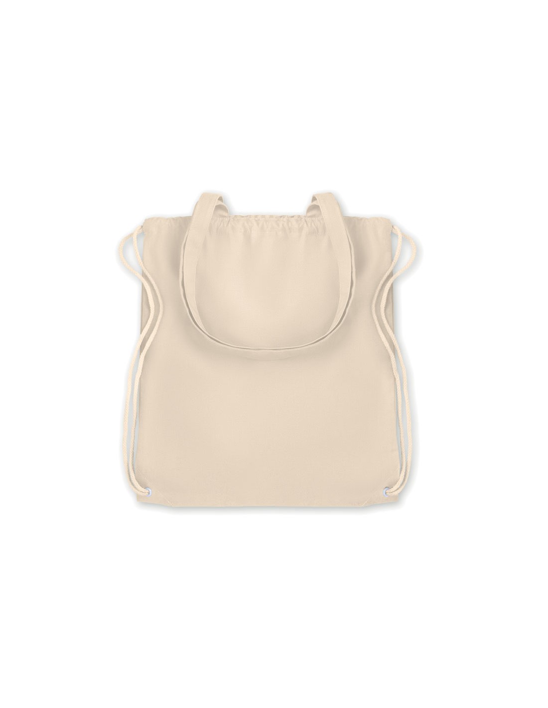 Sacca/shopper in canvas naturale. Manici lunghi e coulisse. 220 gr/m².