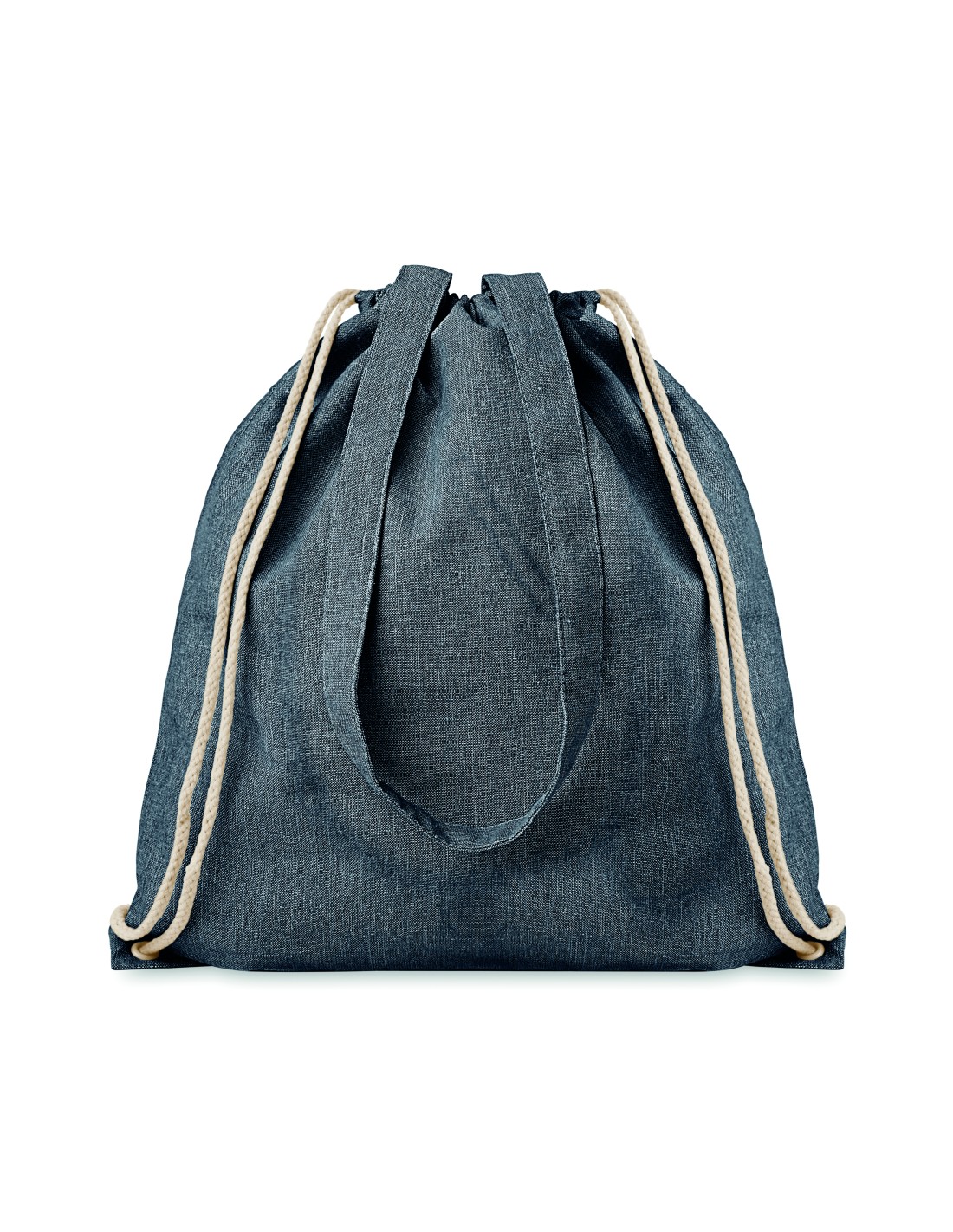 Sacca tono su tono in cotone e poliestere riciclati con coulisse e manici lunghi (20%/80%). Ca.140gr/m². Questo articolo può restringersi dopo la stampa.
