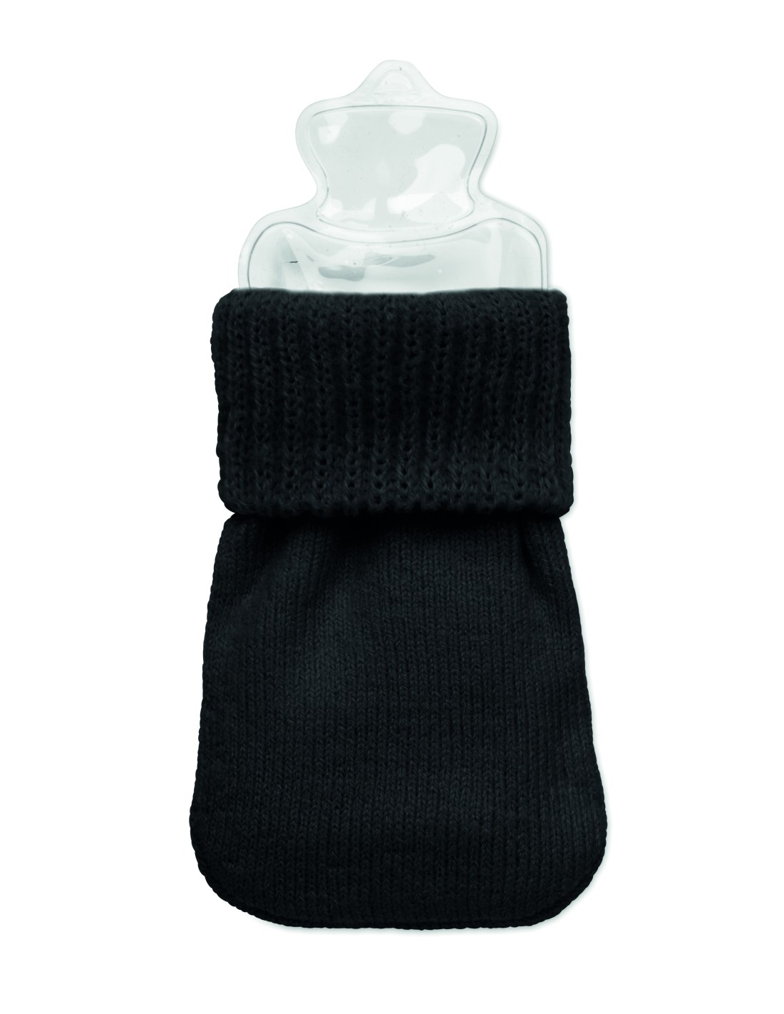 Scaldamani in poliestere lavorato a maglia. Include un cuscinetto termico istantaneo in PVC da attivare premendo la piastra metallica interna. Riutilizzabile mettendo il cuscinetto in acqua calda.