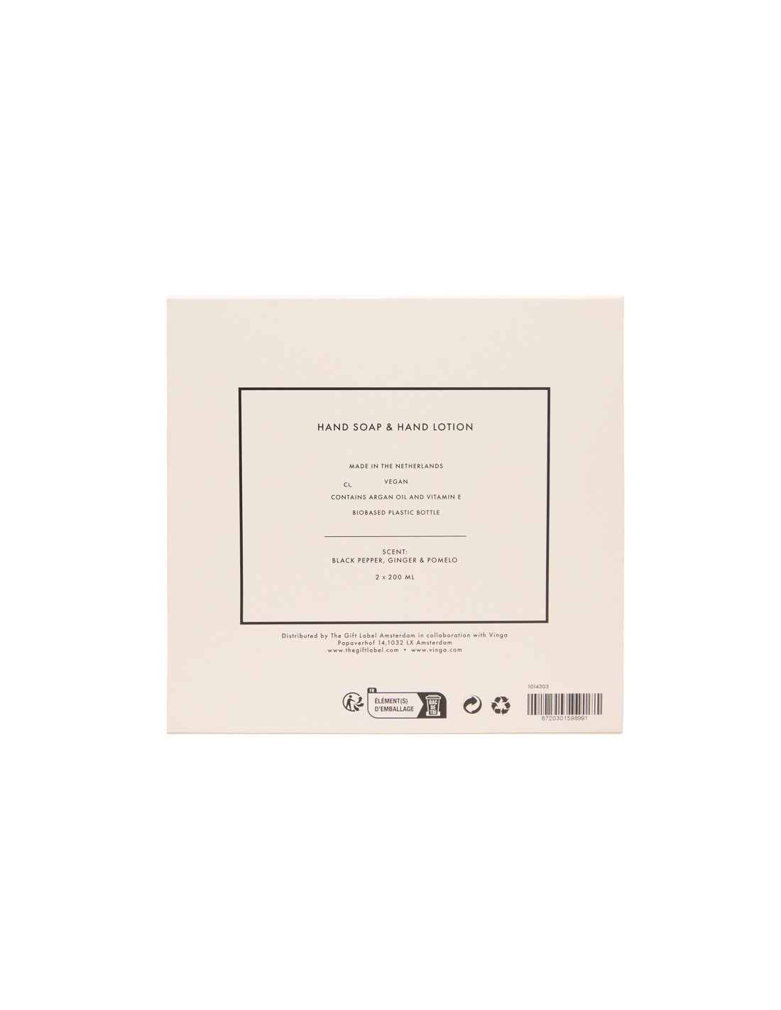 Mani morbide come la seta, ogni giorno. Prenditi cura delle tue mani con questo set unisex dal profumo delizioso, composto da due flaconi da 200 ml di sapone e lozione per le mani. Con il suo aroma caldo e piccante di pepe nero, zenzero e pomelo, lascia le mani morbide, nutrite e delicatamente profumate. Un tocco che tutti ricorderanno. Confezionato elegantemente in una scatola regalo nei colori bianco crema e nero.