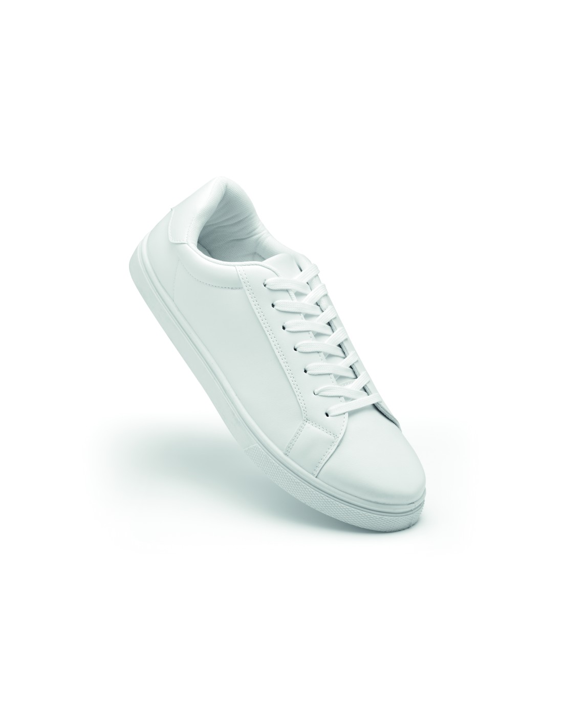 Scarpe da ginnastica leggere in PU con suola in gomma e lacci in poliestere. Taglia: 41. Presentate in una scatola di scarpe bianca.