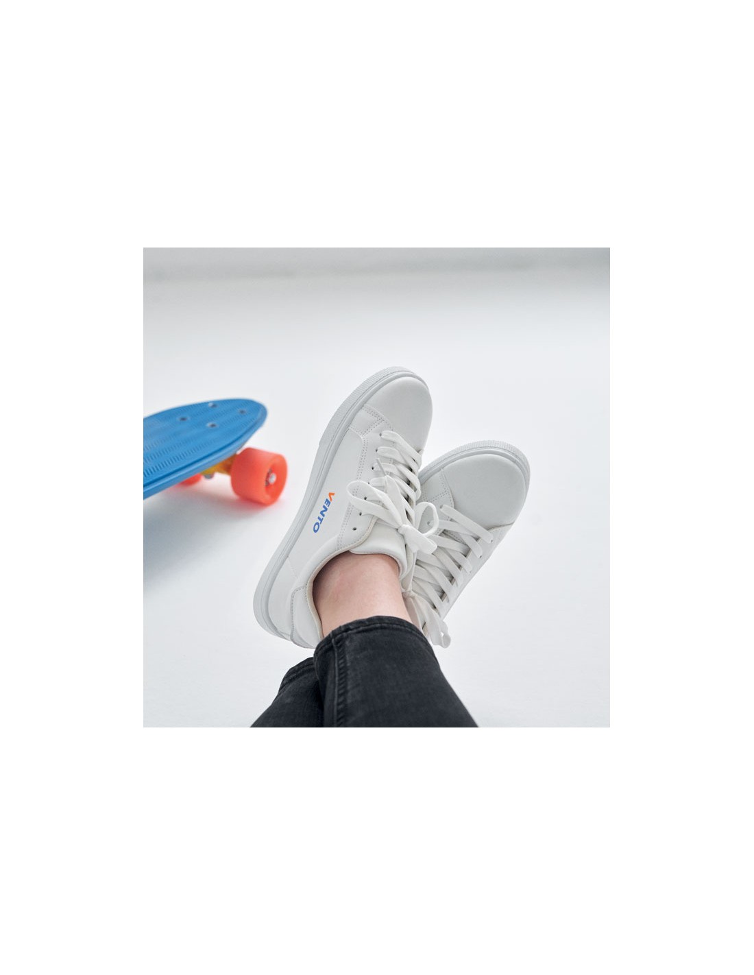 Scarpe da ginnastica leggere in PU con suola in gomma e lacci in poliestere. Numero: 38. Presentate in una scatola da scarpe bianca.