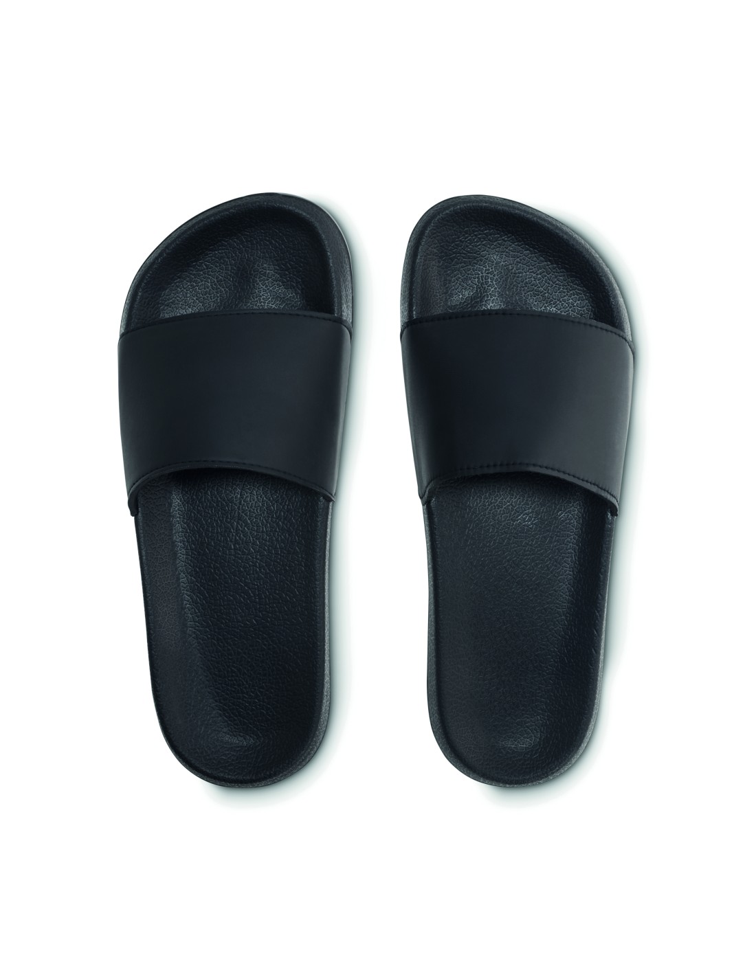Infradito da spiaggia con strap in PVC. Suola in gomma con copertura in poliestere. La Taglia 42-44. Se ordinato senza stampa, l’articolo viene fornito smontato. L'articolo può essere ordinato solo stampato.