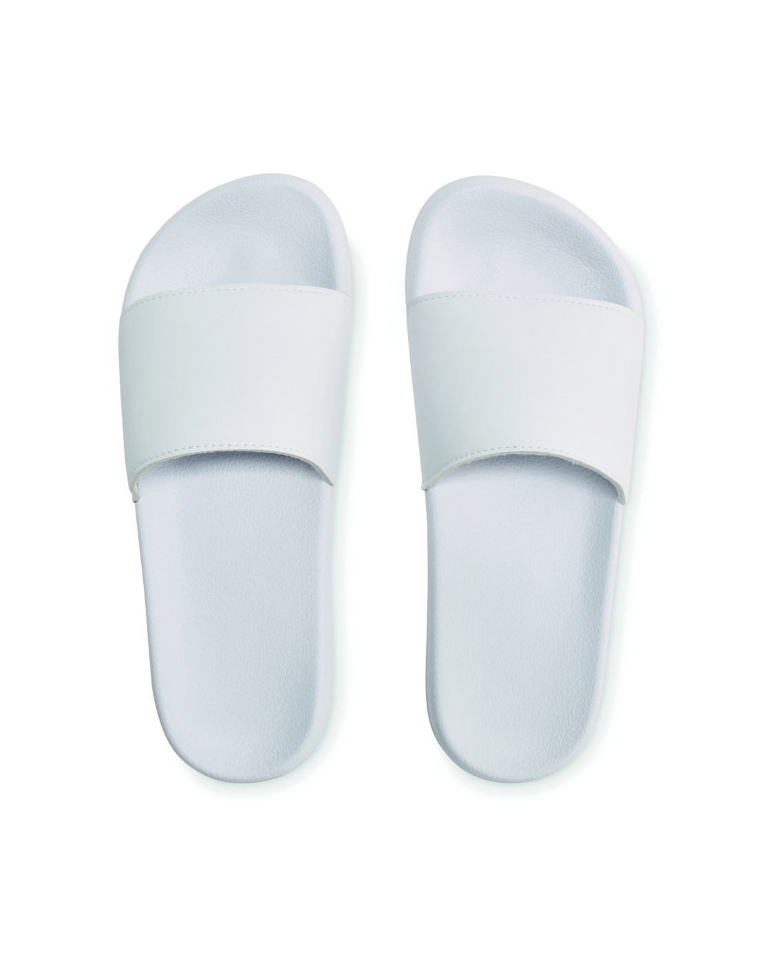 Infradito da spiaggia con strap in PVC. Suola in gomma con copertura in poliestere. La Taglia 42-44. Se ordinato senza stampa, l’articolo viene fornito smontato. L'articolo può essere ordinato solo stampato.