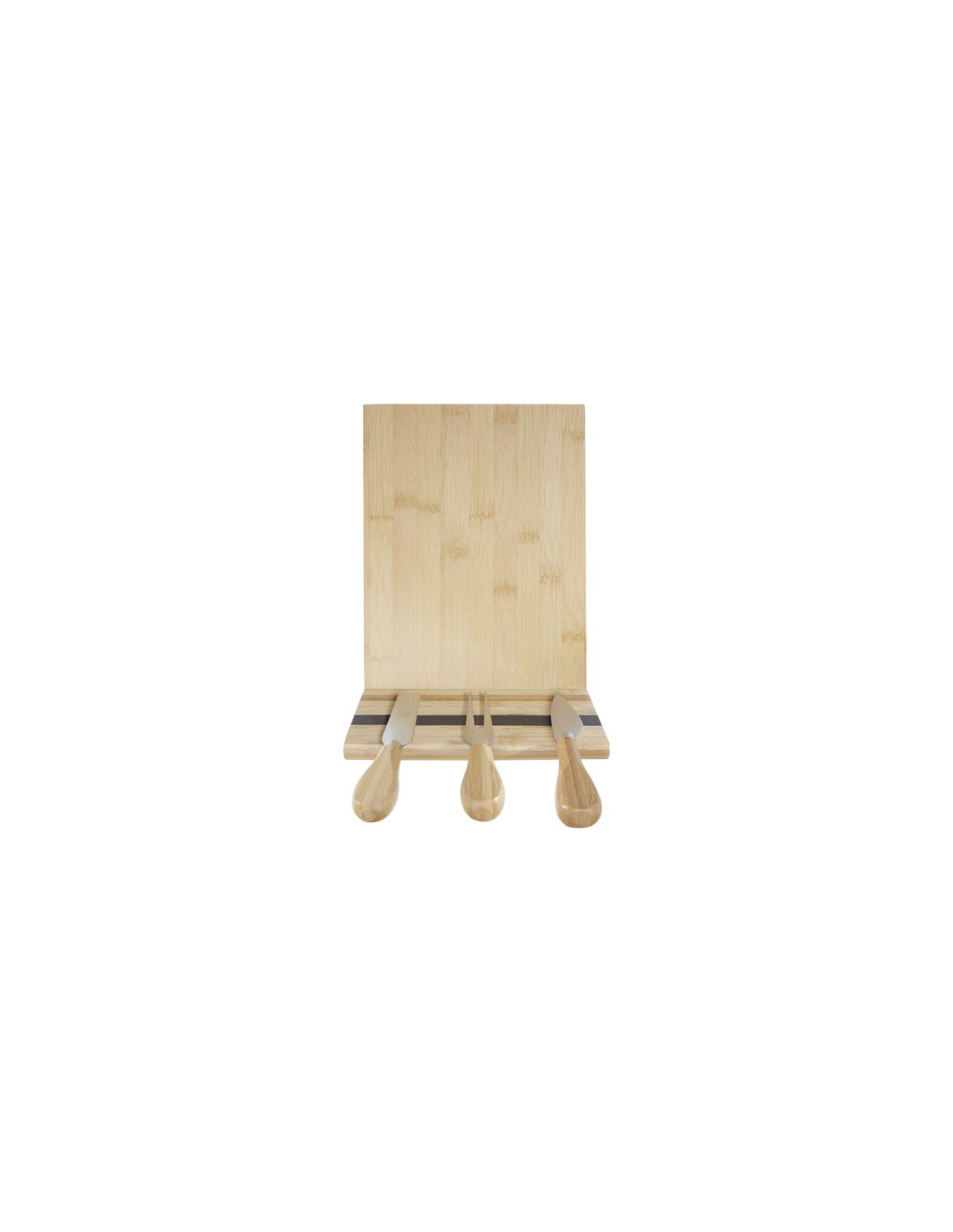 Set per il formaggio in bambù composto da un tagliere (30 x 7,6 cm), due coltelli (12,5 x 2,5 cm e 12,5 x 2,7 cm) e una forchetta (13,5 x 2,4 cm). Sul lato del tagliere è presente una striscia magnetica su cui possono essere attaccati gli utensili: potrai così servire il formaggio con stile. Il bambù utilizzato è ottenuto e prodotto in base a standard ecosostenibili.