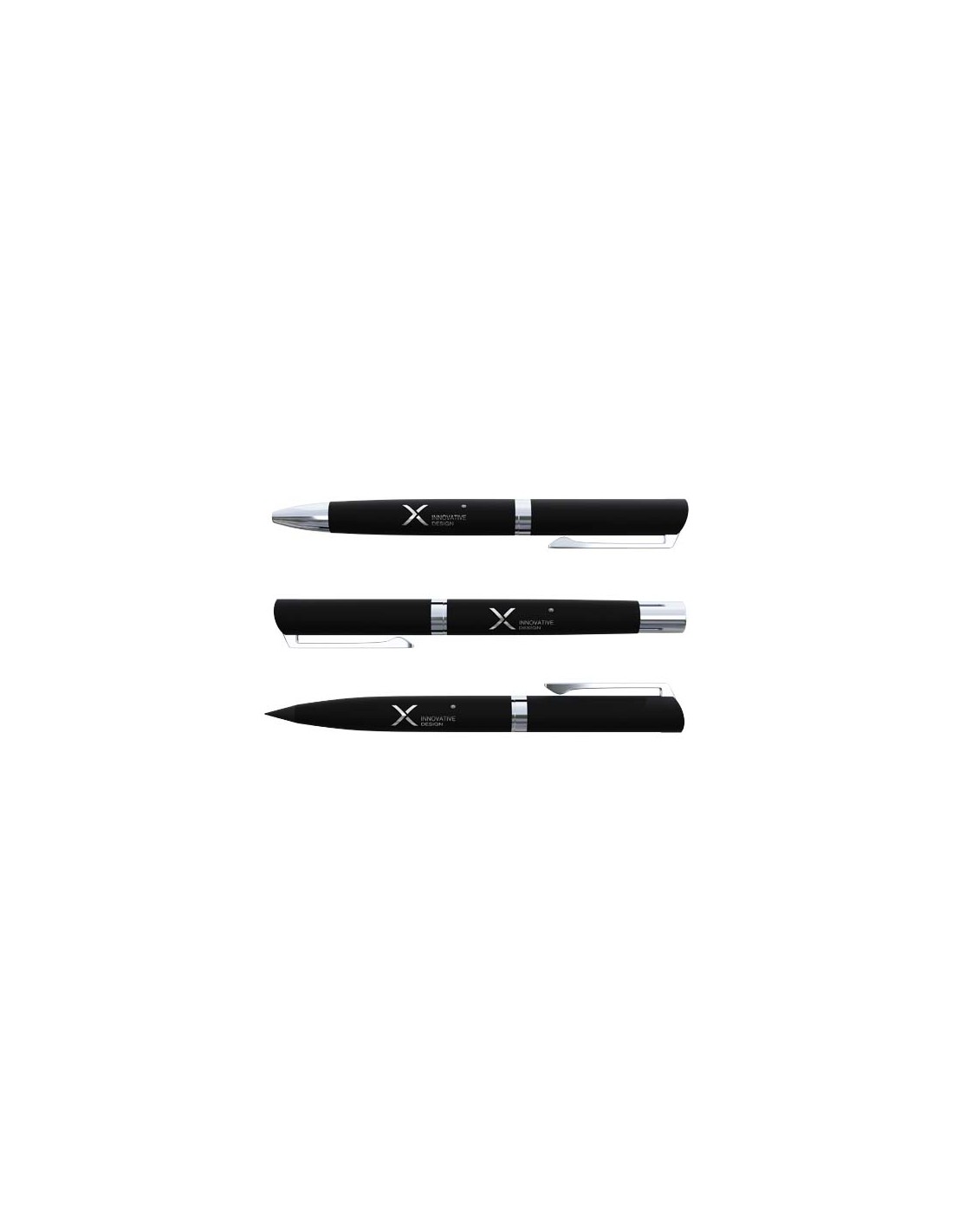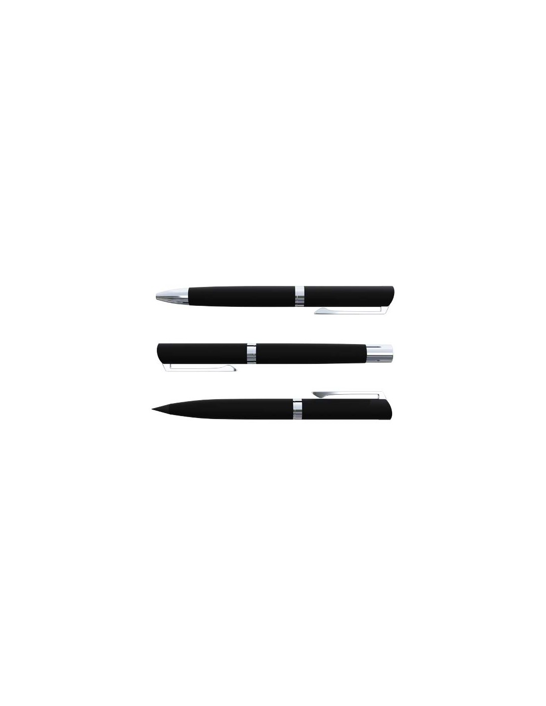 Questo elegante set di tre penne, realizzato in alluminio con finitura in gomma morbida, consente di esprimere le idee in modo fluido su diverse superfici. Il set comprende una penna a sfera con inchiostro blu Dokumental® tedesco di alta qualità e capacità di scrittura di 1800 metri, con punta in carburo di tungsteno per una maggiore precisione. La penna roller utilizza inchiostro nero Dokumental® tedesco con una capacità di 400 metri, perfetto per una scrittura fluida e raffinata. La matita in grafite offre una capacità di scrittura fino a 5000 metri, ideale per schizzi e appunti. Ogni strumento di scrittura include una ricarica di ricambio che si trova nella parte superiore della confezione regalo: inchiostro blu per la penna a sfera (fino a 2 anni di utilizzo), inchiostro nero per la penna roller (fino a 6 mesi) e mina extra per la matita (fino a 3 anni). Personalizzabile con incisione laser ad effetto metallizzato. Fornito in una confezione regalo in cartone riciclato.