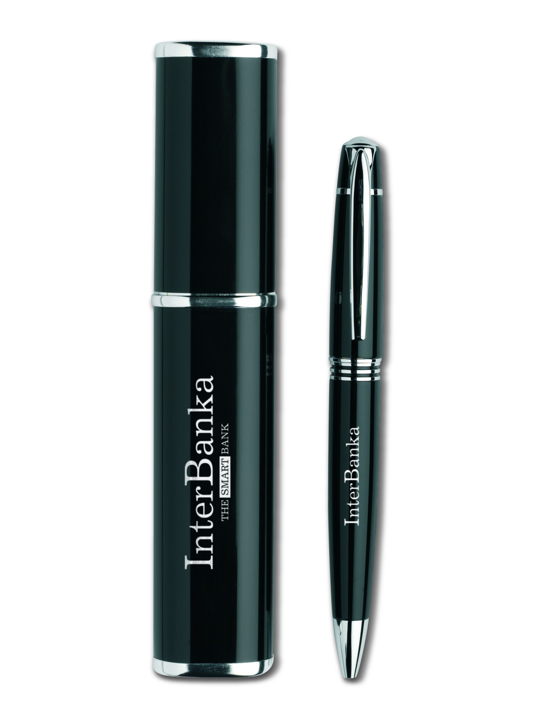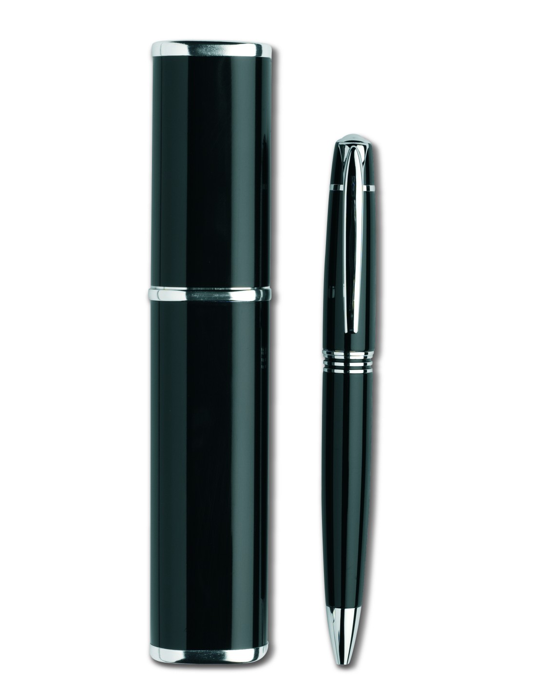 Set penna a sfera con refill blu e matita in alluminio in confezione di metallo. Meccanismo a scatto.