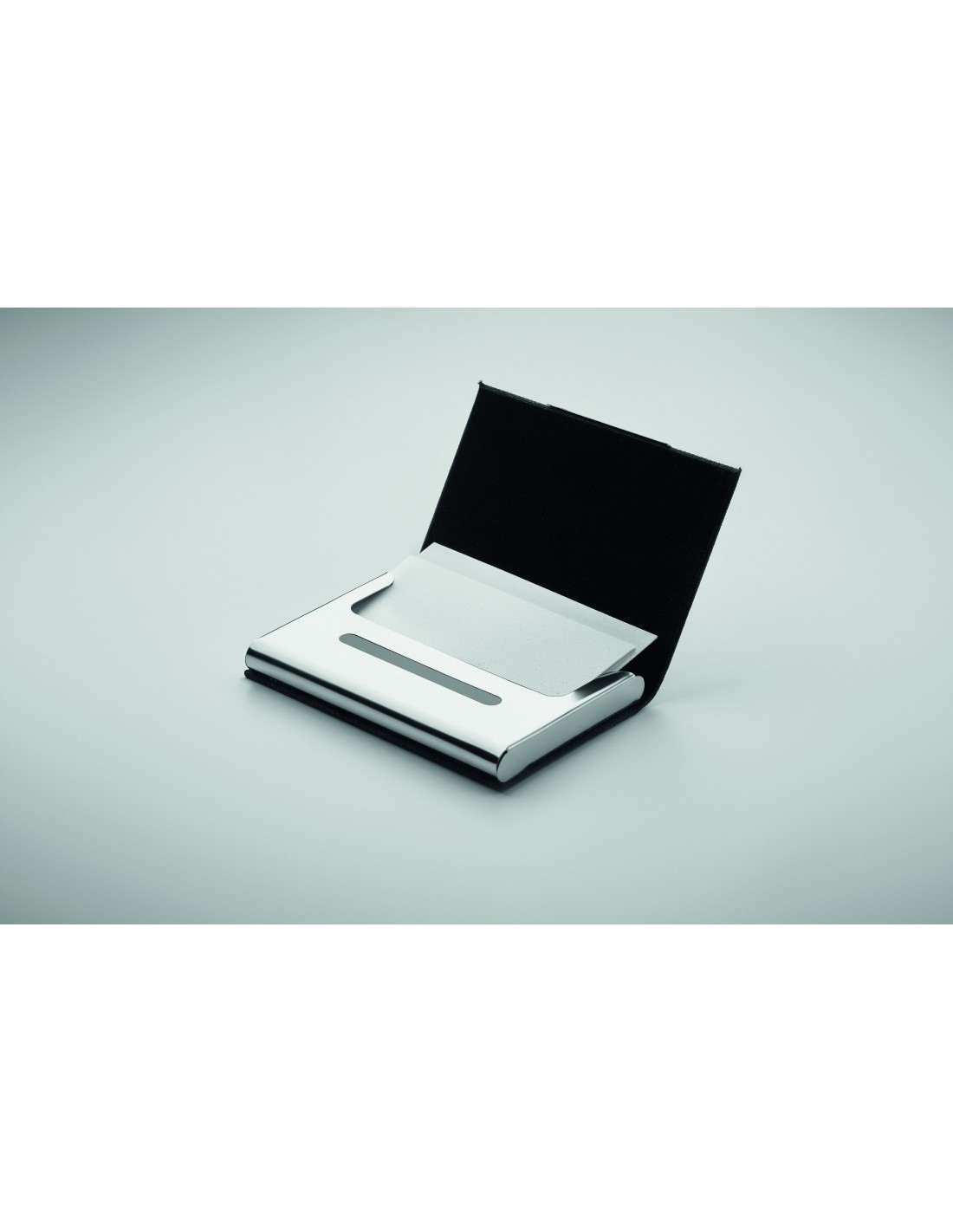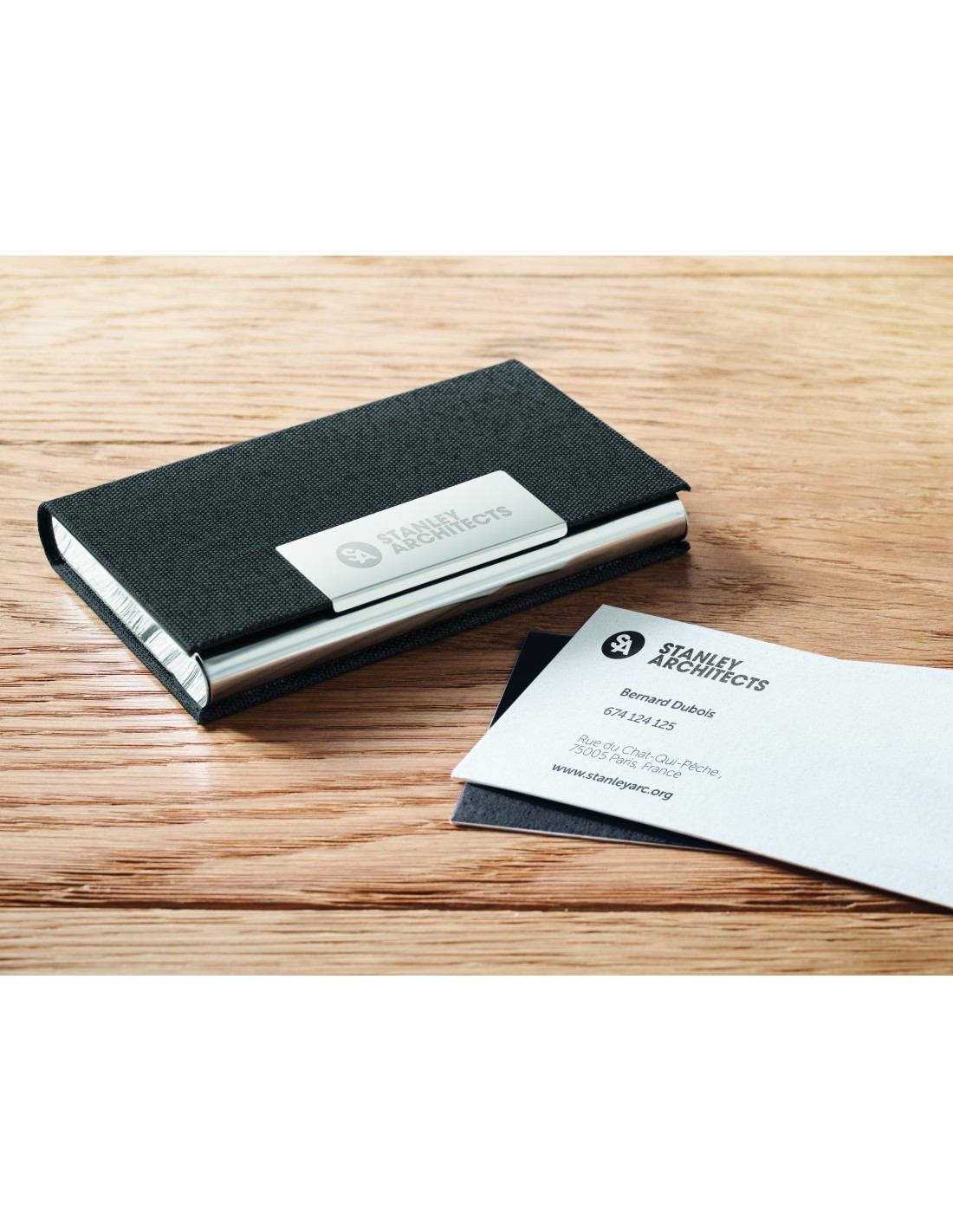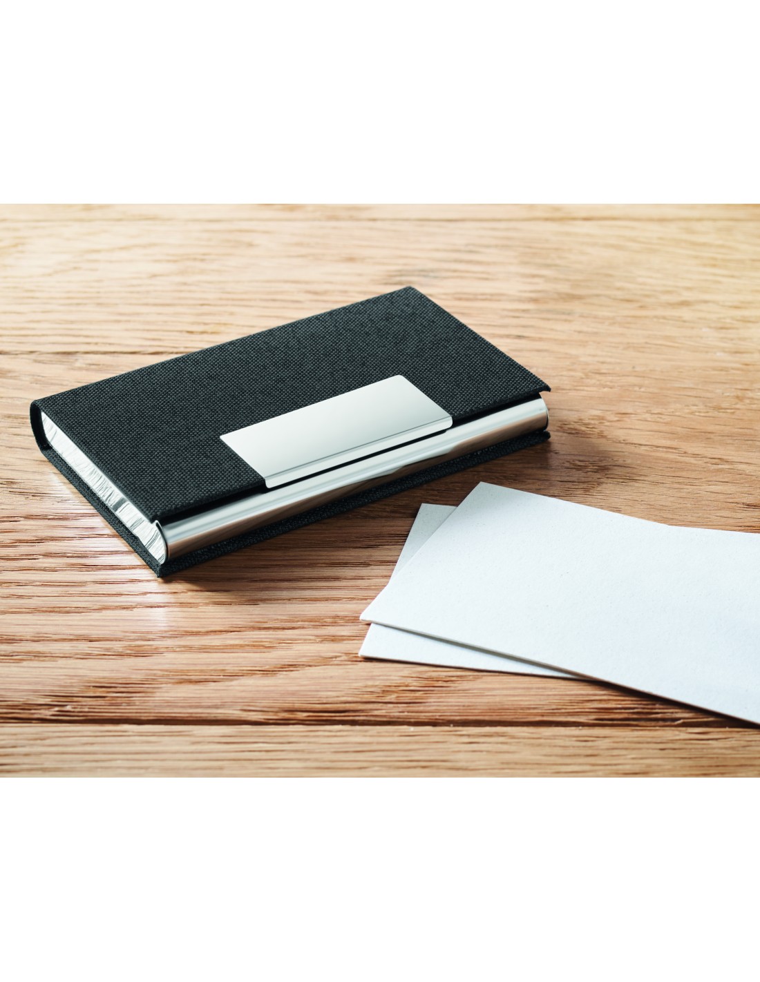 Set da 3 pezzi in confezione regalo. Comprende una penna a sfera a rotazione in metallo con dettagli in poliestere RPET, un portachiavi in poliestere RPET e un portacarte in poliestere RPET con targhetta in metallo. Inchiostro blu.
