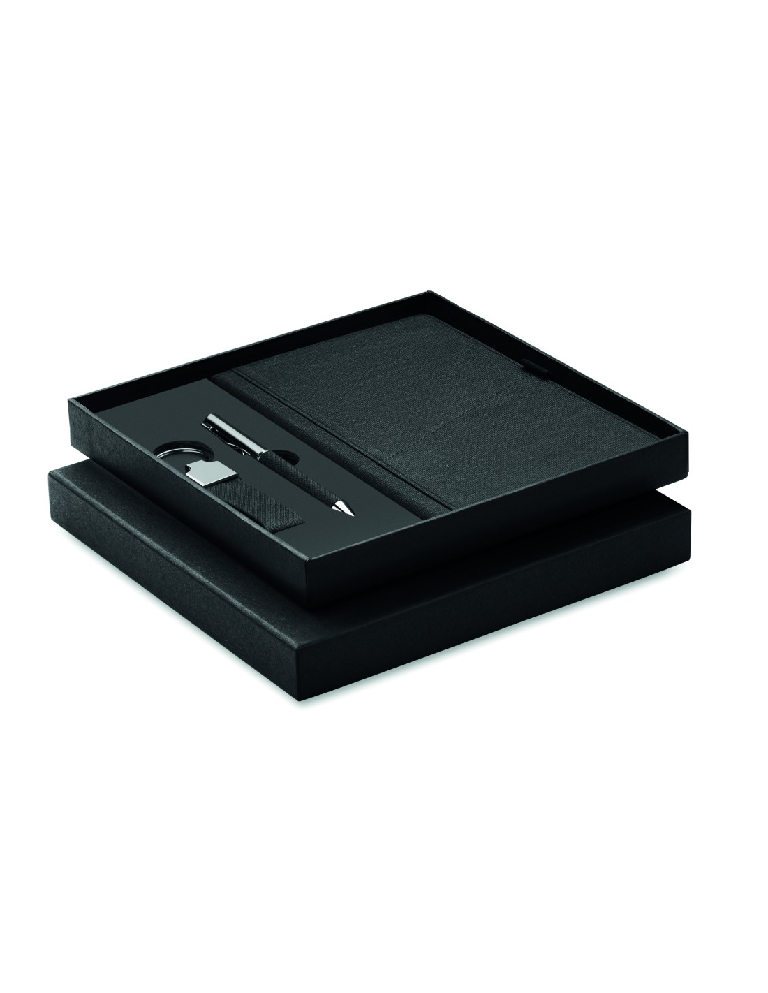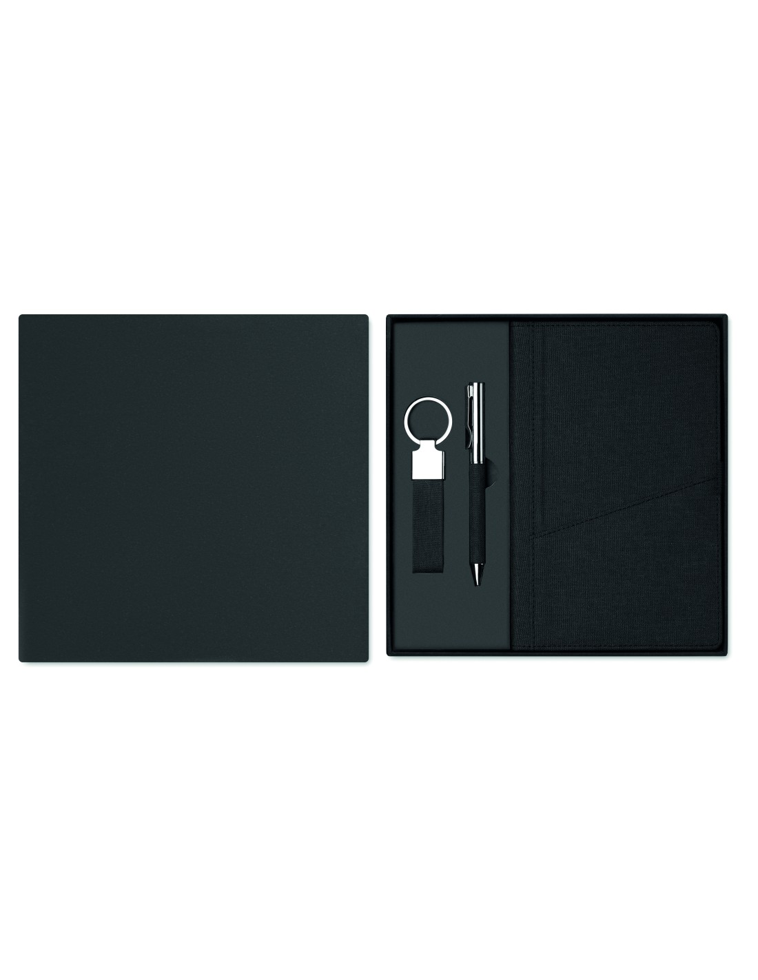 Questo elegante set di tre penne, realizzato in alluminio con finitura in gomma morbida, consente di esprimere le idee in modo fluido su diverse superfici. Il set comprende una penna a sfera con inchiostro blu Dokumental® tedesco di alta qualità e capacità di scrittura di 1800 metri, con punta in...