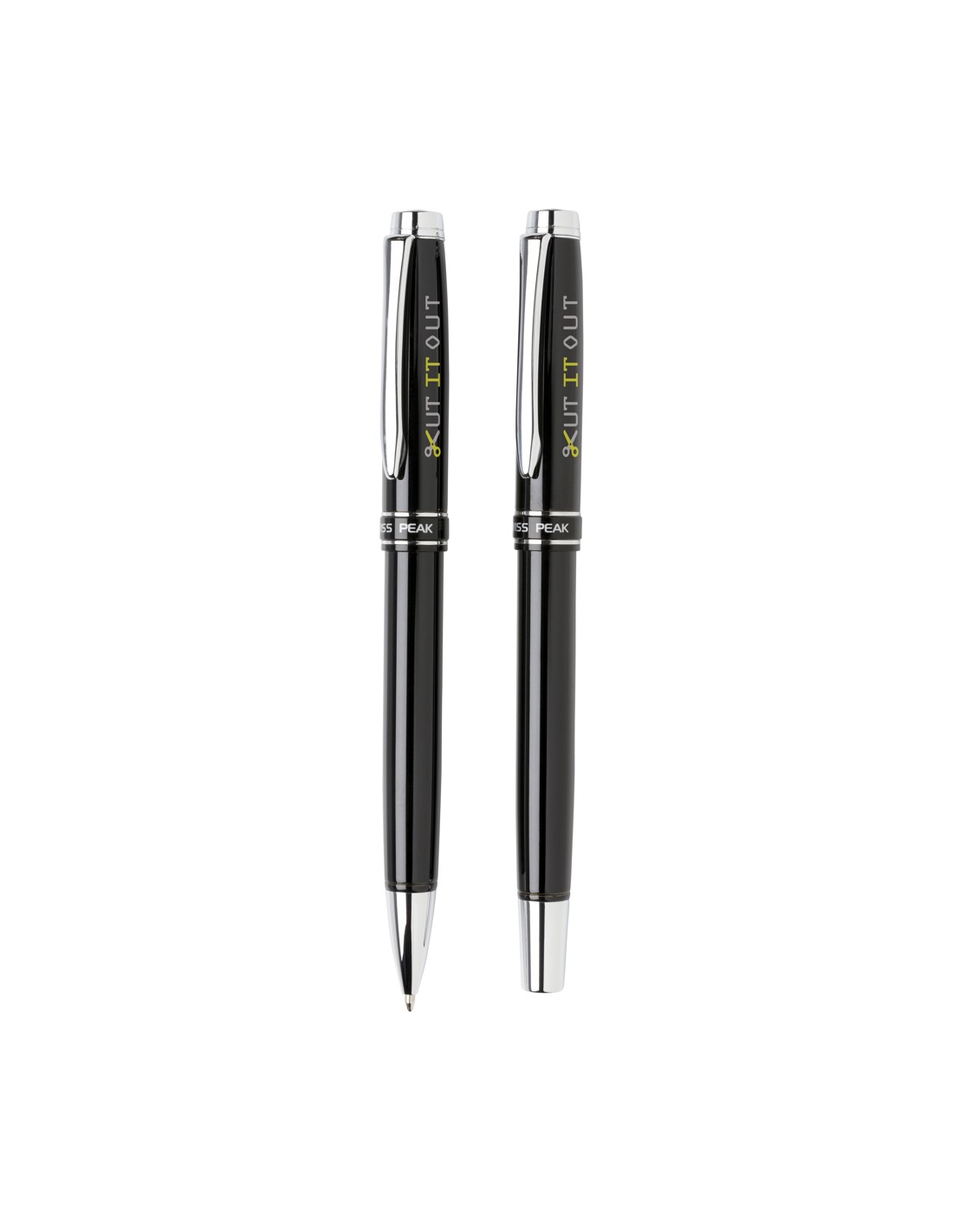 Set penne in confezione regalo. Penna twist e roller con refill blu.