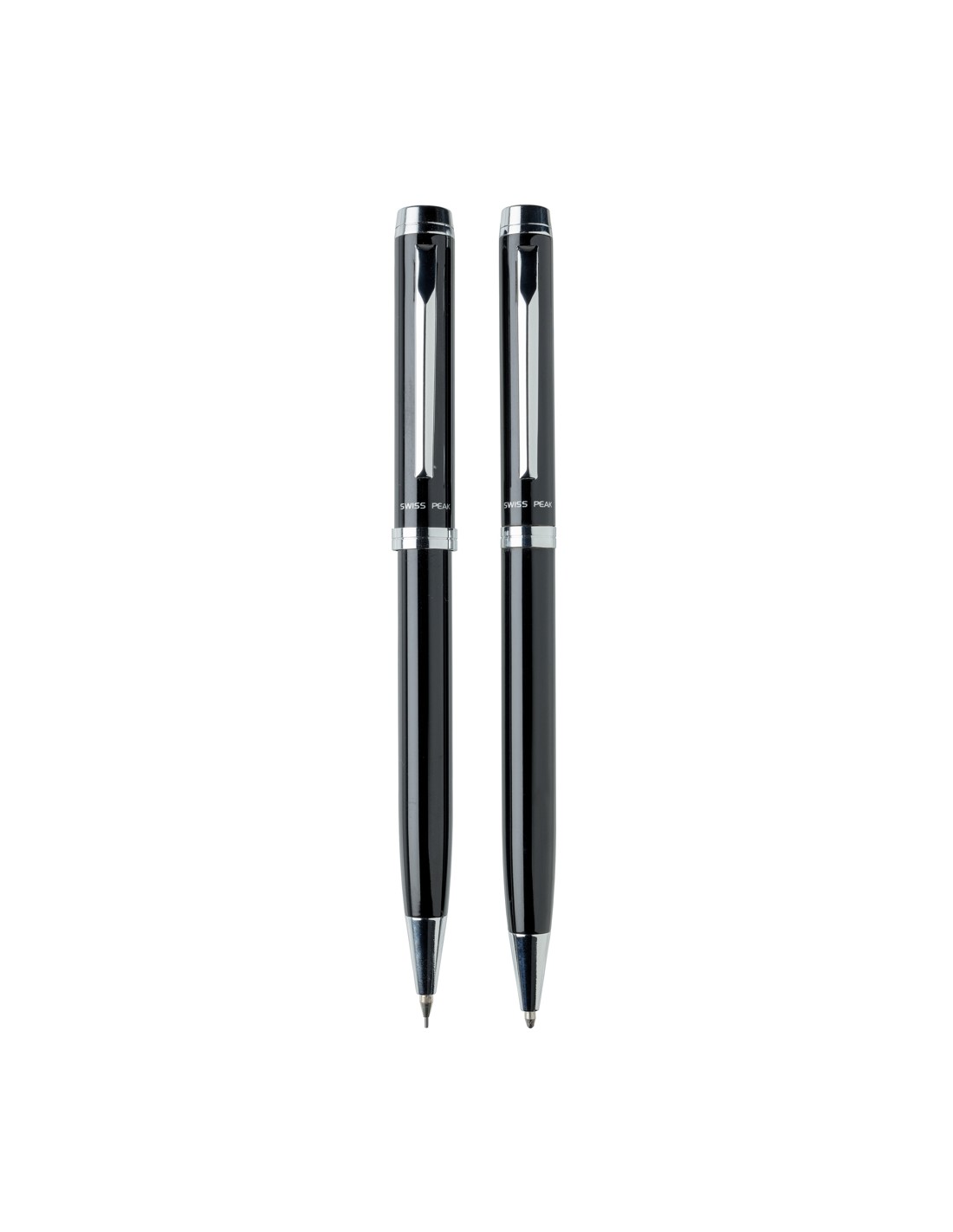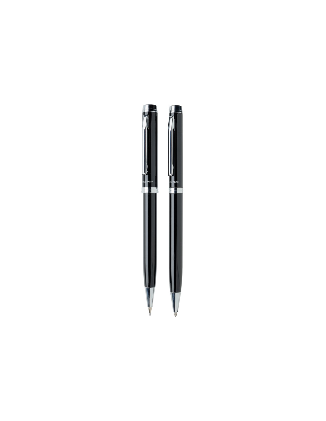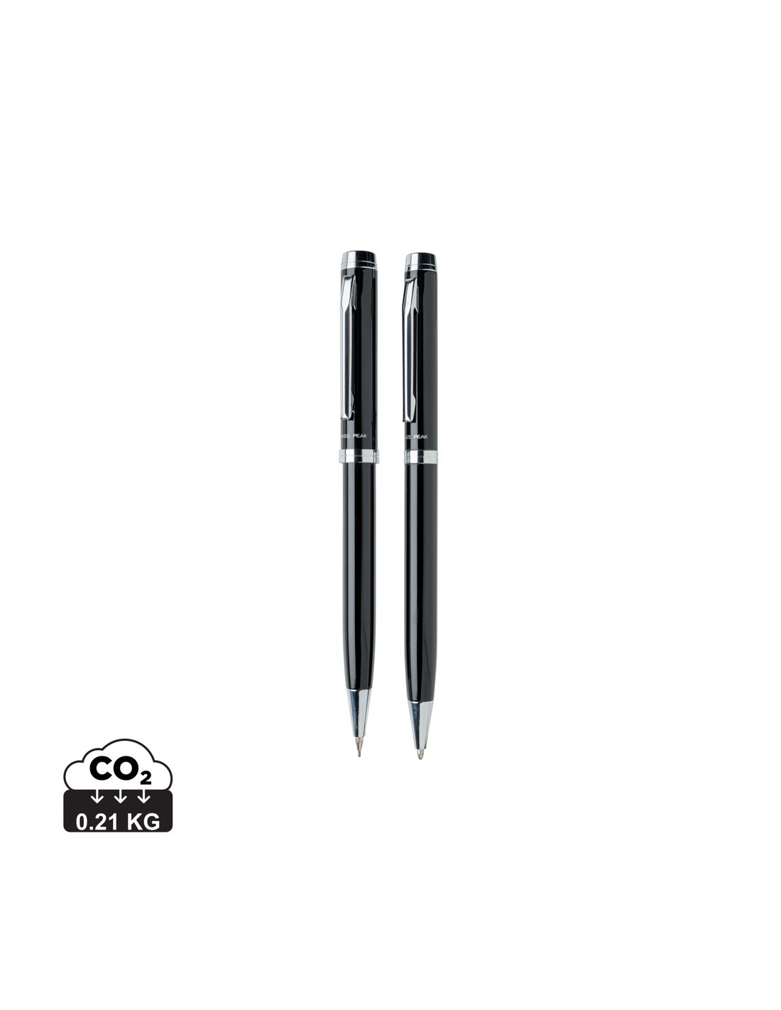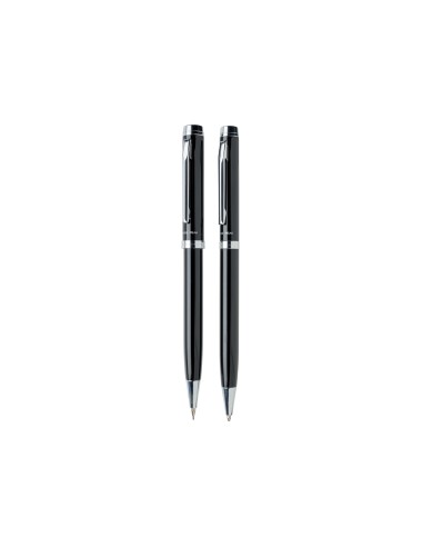Set da 3 pezzi in confezione regalo. Comprende una penna a sfera a rotazione in metallo con dettagli in poliestere RPET, un portachiavi in poliestere RPET e un portacarte in poliestere RPET con targhetta in metallo. Inchiostro blu.
