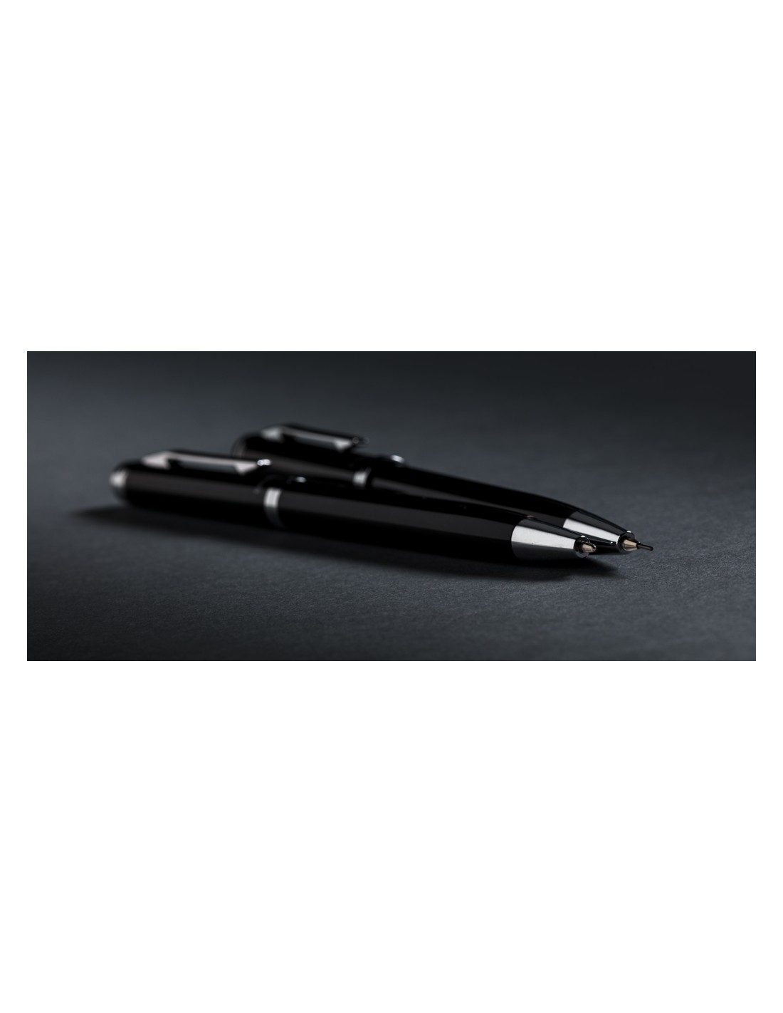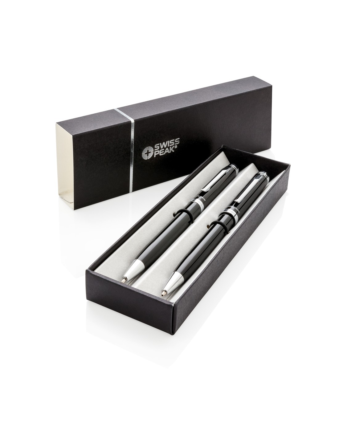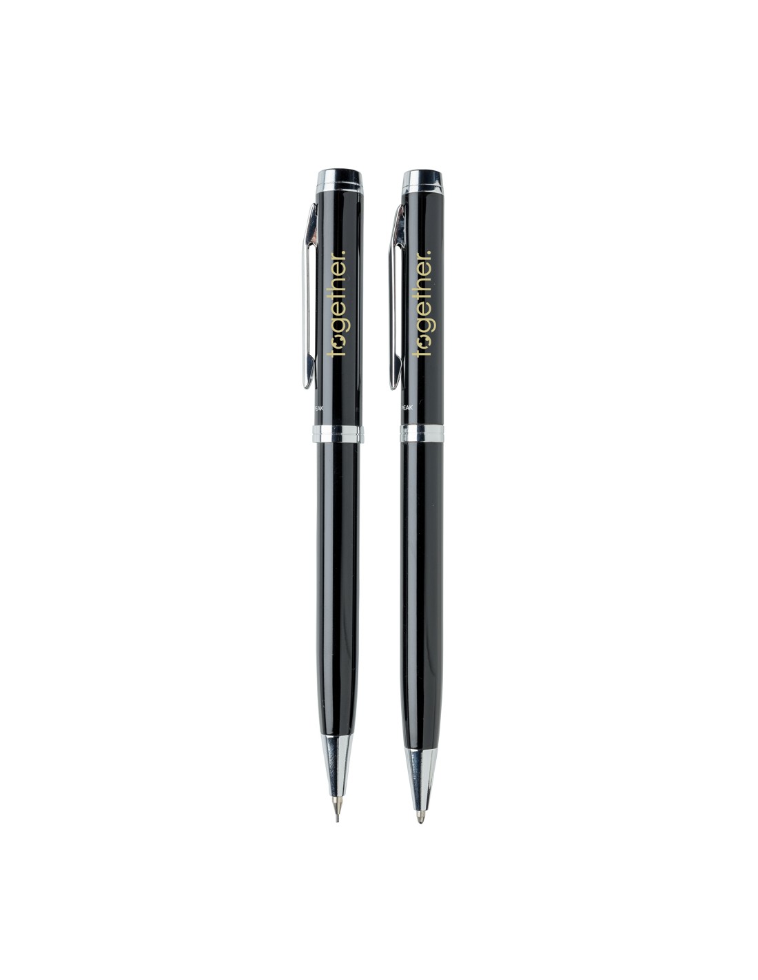 Set da 3 pezzi in confezione regalo. Comprende una penna a sfera a rotazione in metallo con dettagli in poliestere RPET, un portachiavi in poliestere RPET e un portacarte in poliestere RPET con targhetta in metallo. Inchiostro blu.