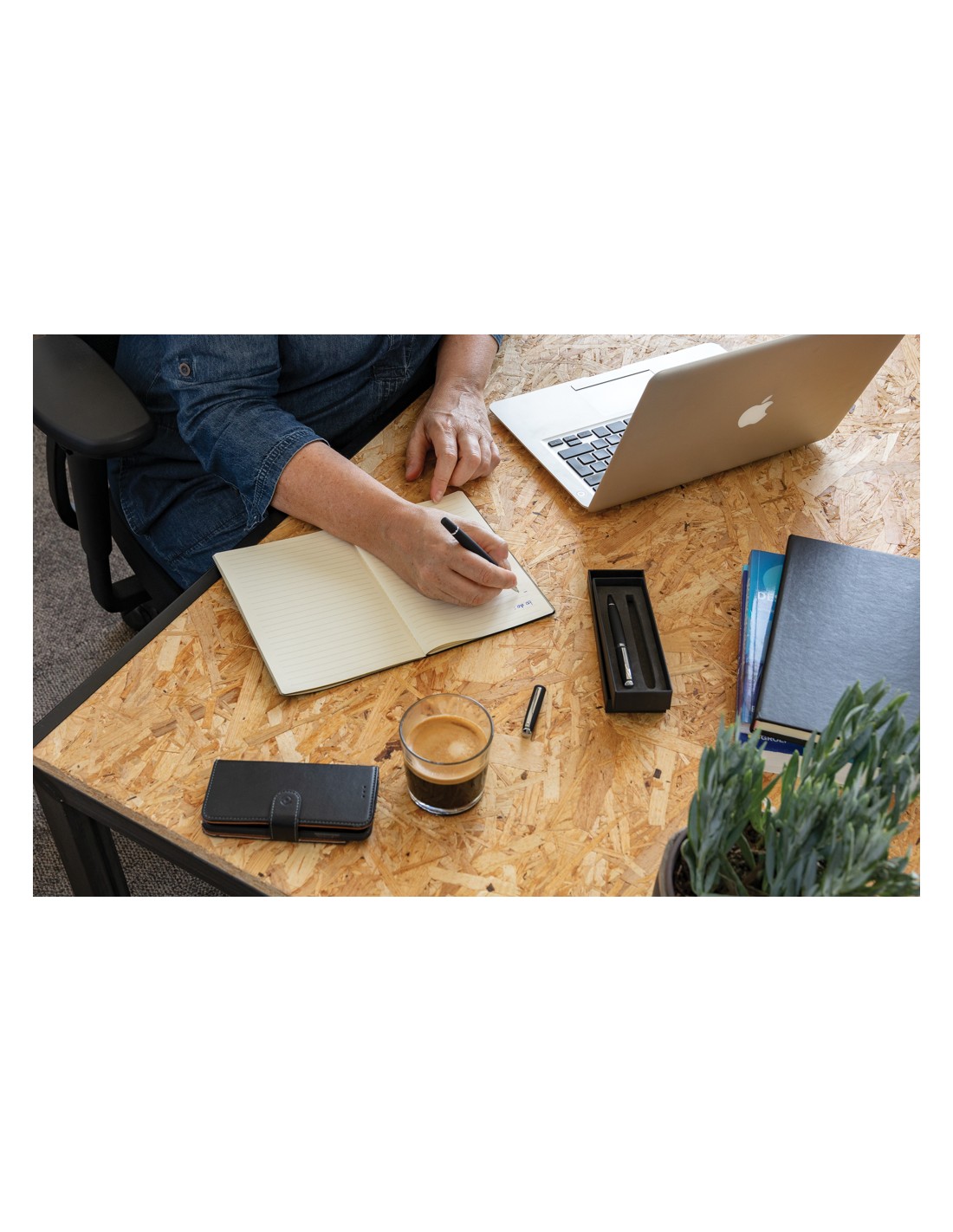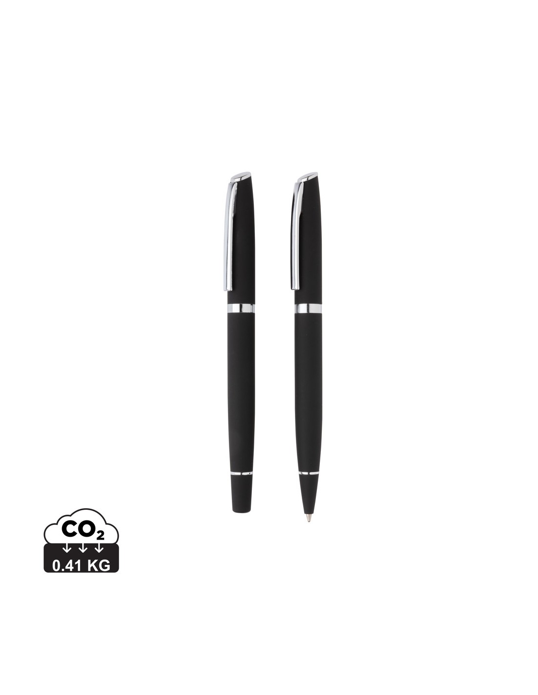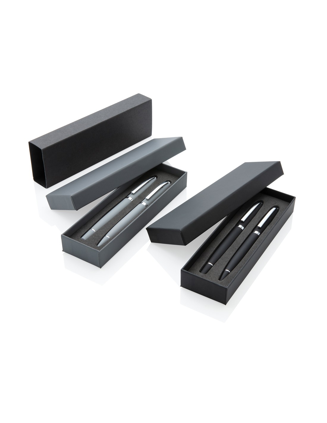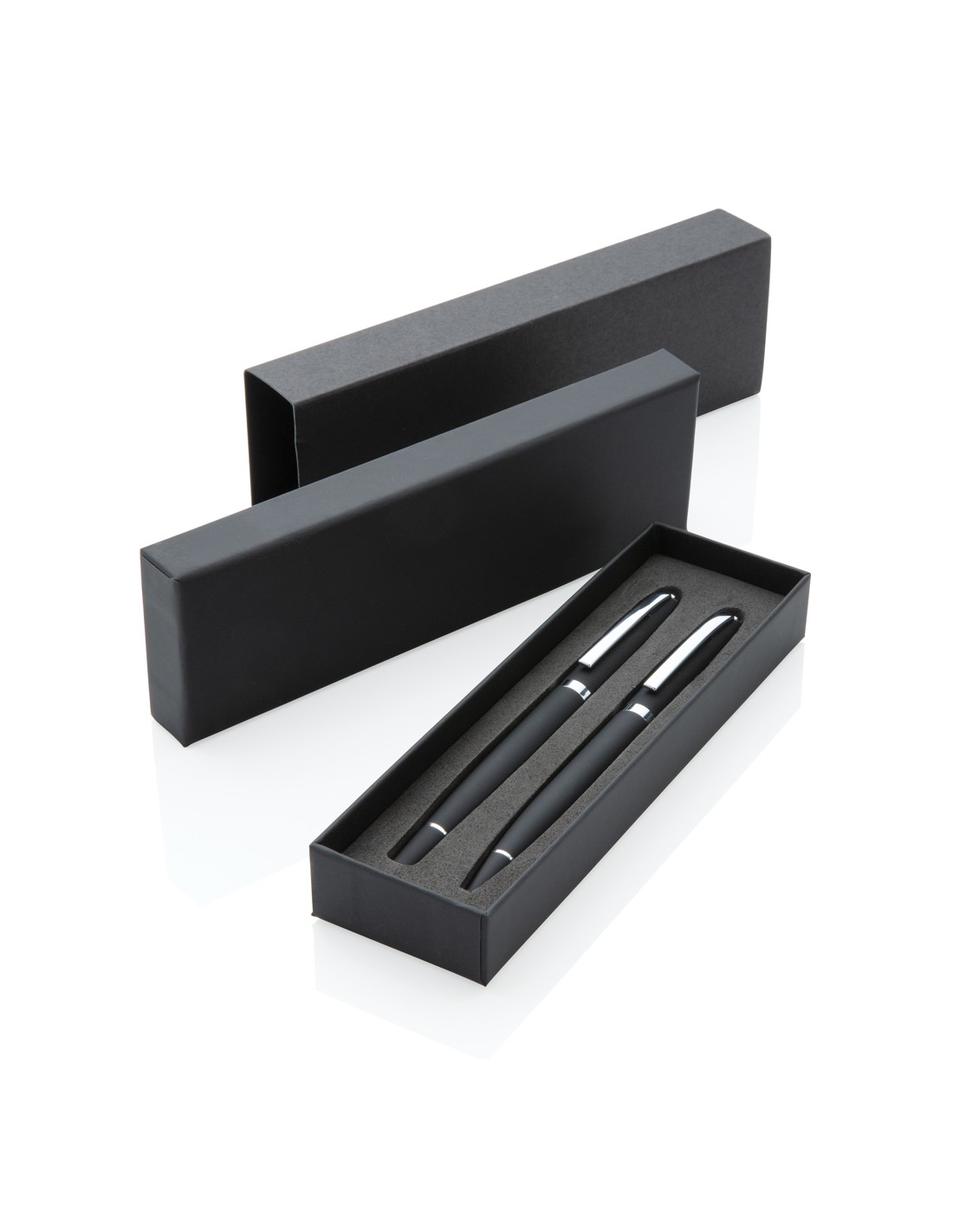 Semplice ma elegante. grazie alla finitura satinata questo set di penne deluxe è veramente bellissimo alla vista e al tatto. Include una penna a sfera e un roller. Entrambe le penne montano incchiostro German Dokumental® per una scrittura fluida. Lunghezza inchiostro penna a sfera 1200 metri, roller 400 metri. E' confezionata in scatola regalo.